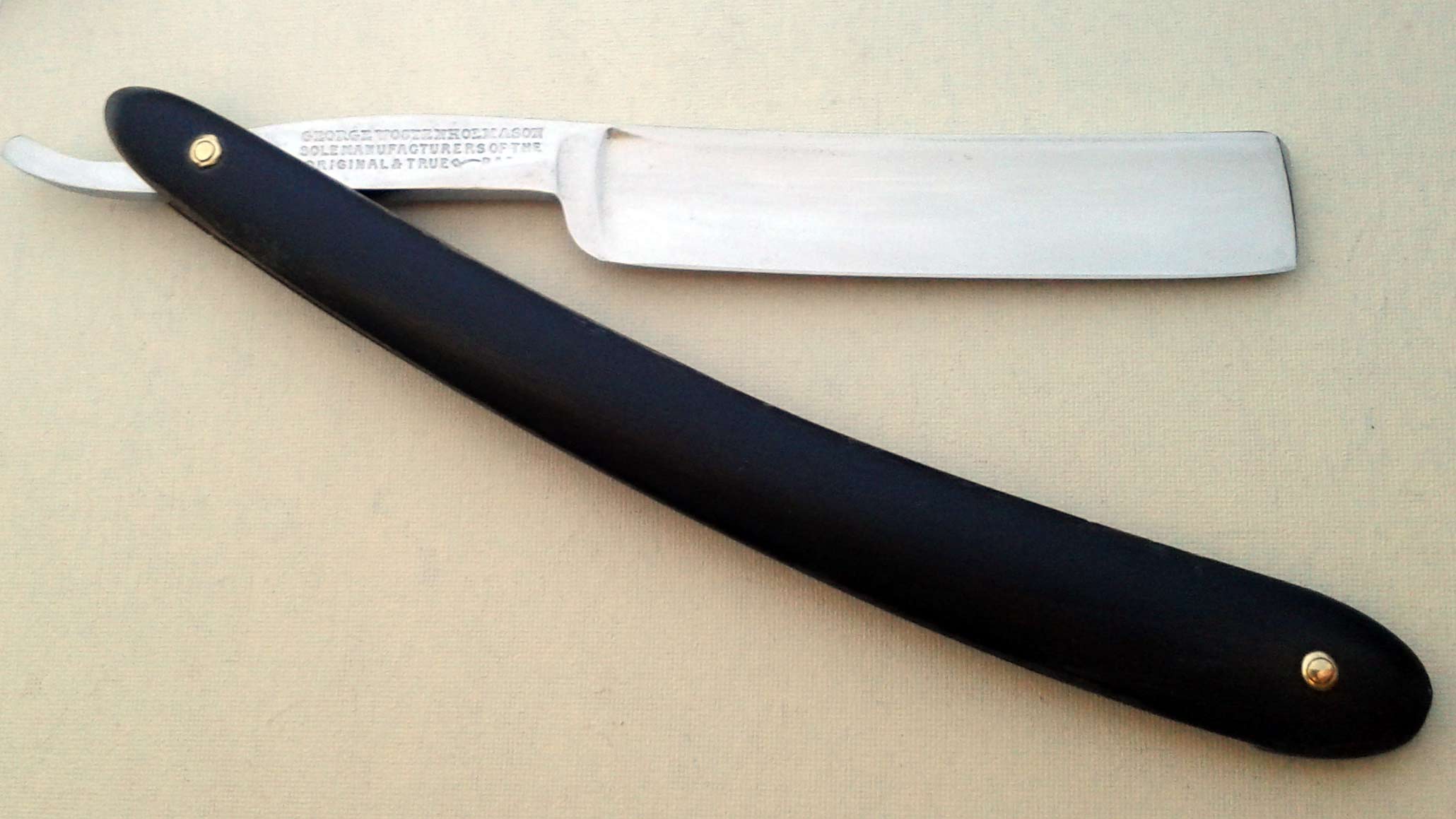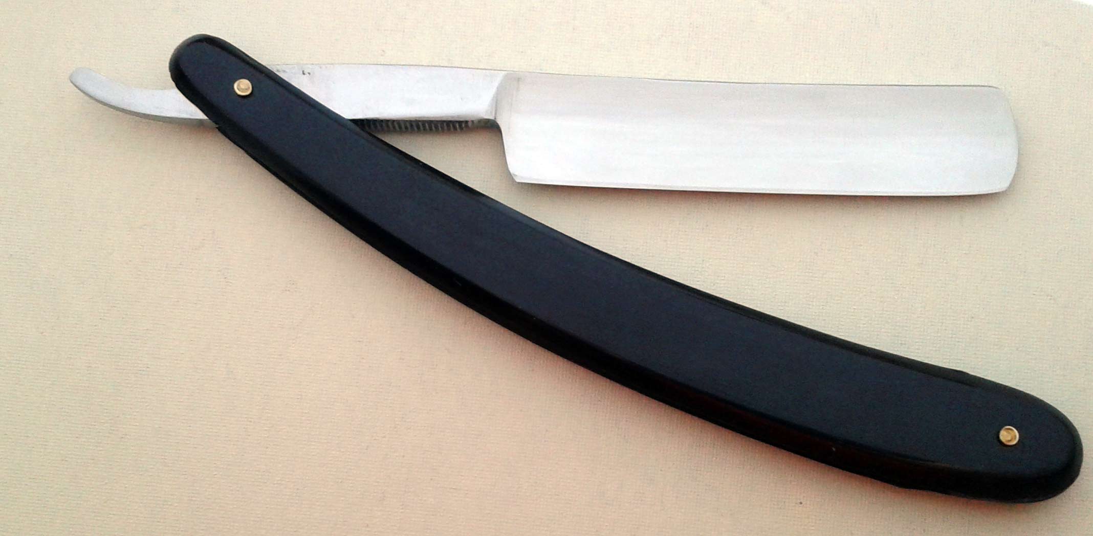Сведения о производителе: http://britva.ru/forum/viewtopic.php?f=28&t=1663" onclick="window.open(this.href);return false; Ручка - эбонит, в приличном состоянии, клинышек из металла. По-видимому, ручка и пины родные. На полотне присутствуют небольшие "следы времени". Заточена и полностью готова к бритью. Ширина полотна 16,5 мм, толщина в обушке 4,5 мм. Цена 60 евро, доставка включена. Spoiler Show