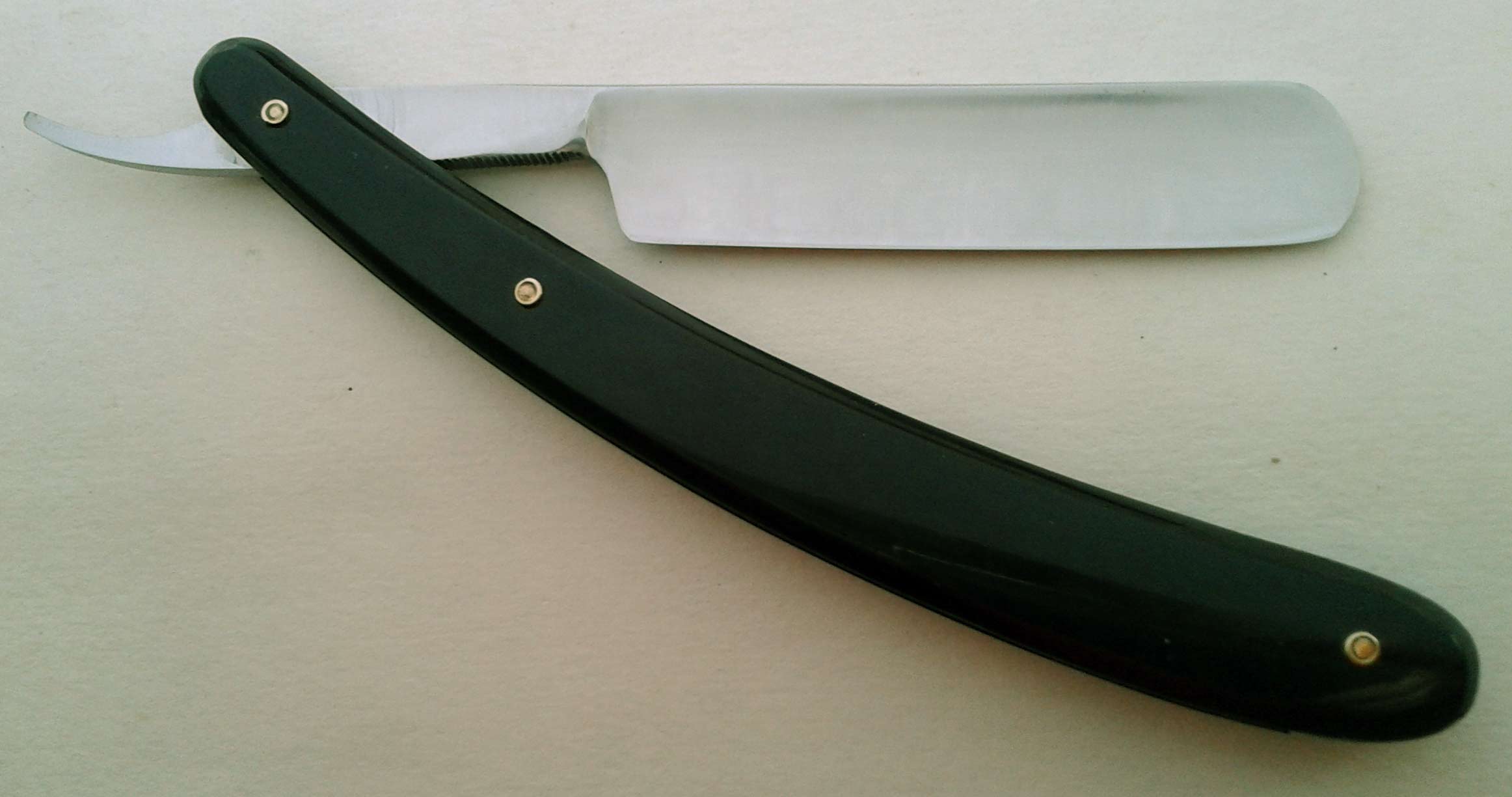 Сведения о производителе: http://britva.ru/forum/viewtopic.php?f=28&t=1663" onclick="window.open(this.href);return false; Ручка - эбонит, в приличном состоянии, клинышек из металла. По-видимому, ручка и пины родные. На полотне присутствуют небольшие "следы времени". Заточена и полностью готова к бритью. Ширина полотна 16,5 мм, толщина в обушке 4,5 мм. Цена 60 евро, доставка включена. Spoiler Show