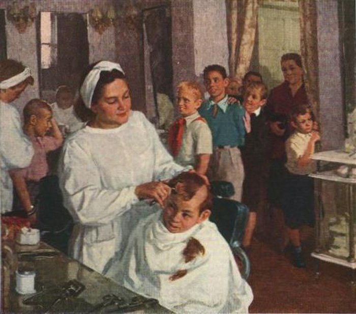 Re: Опасная бритва в искусстве ( картины, рисунки, фото, тату) Серия художественных работ о парикмахерах, цирюльниках и брадобреях! Неизвестный художник Beim Friseur. Часть пятая Show Norman Rockwell