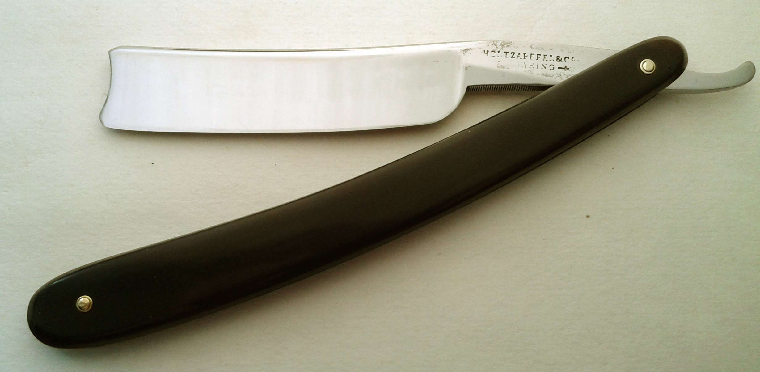 Сведения о производителе: http://britva.ru/forum/viewtopic.php?f=28&t=1663" onclick="window.open(this.href);return false; Ручка - эбонит, в приличном состоянии, клинышек из металла. По-видимому, ручка и пины родные. На полотне присутствуют небольшие "следы времени". Заточена и полностью готова к бритью. Ширина полотна 16,5 мм, толщина в обушке 4,5 мм. Цена 60 евро, доставка включена. Spoiler Show