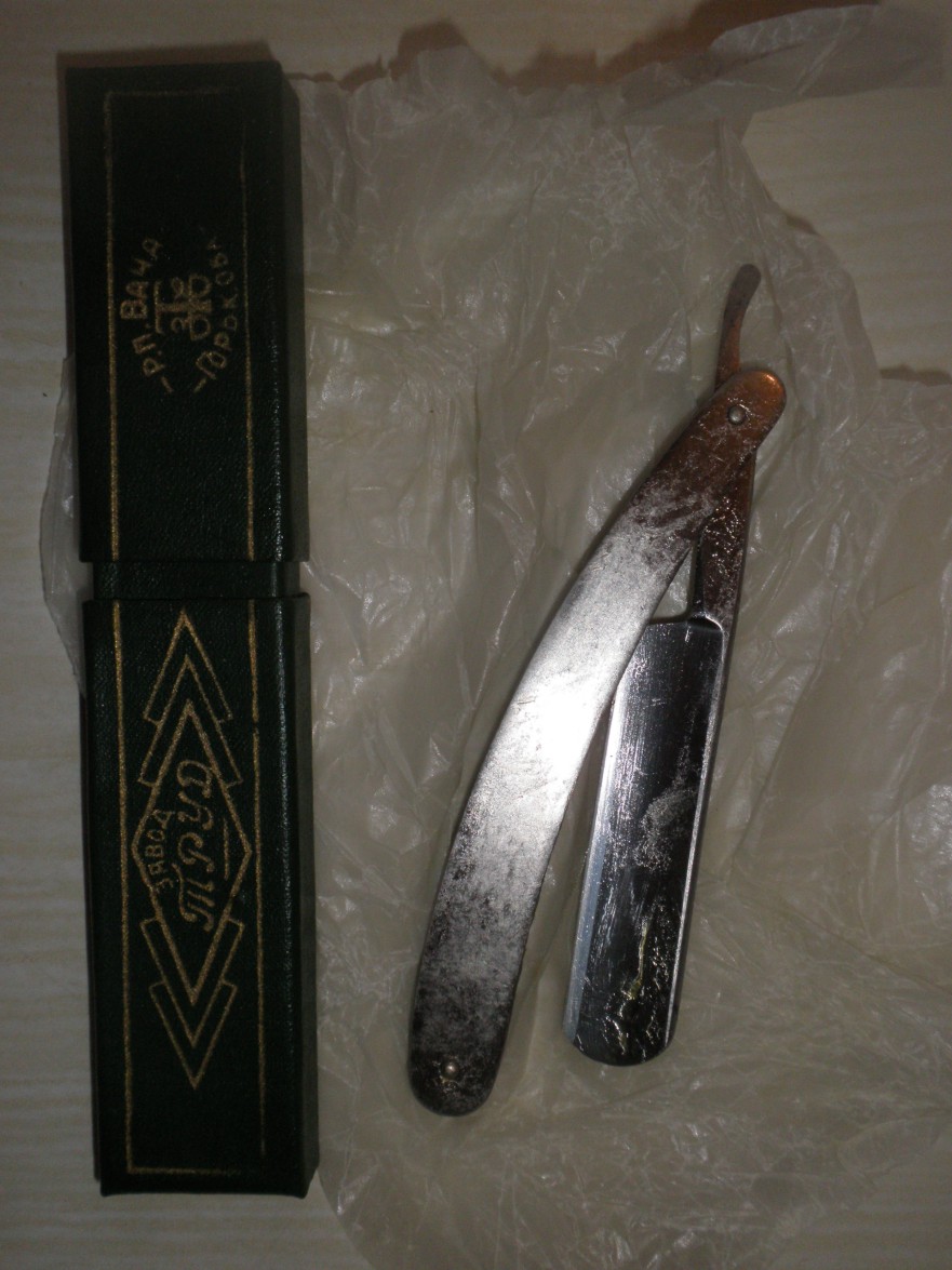 Re: Требуется оценка опасных бритв Труд "Вача"Сотрите чистой тряпочкой, смазка исторической ценности не имеет