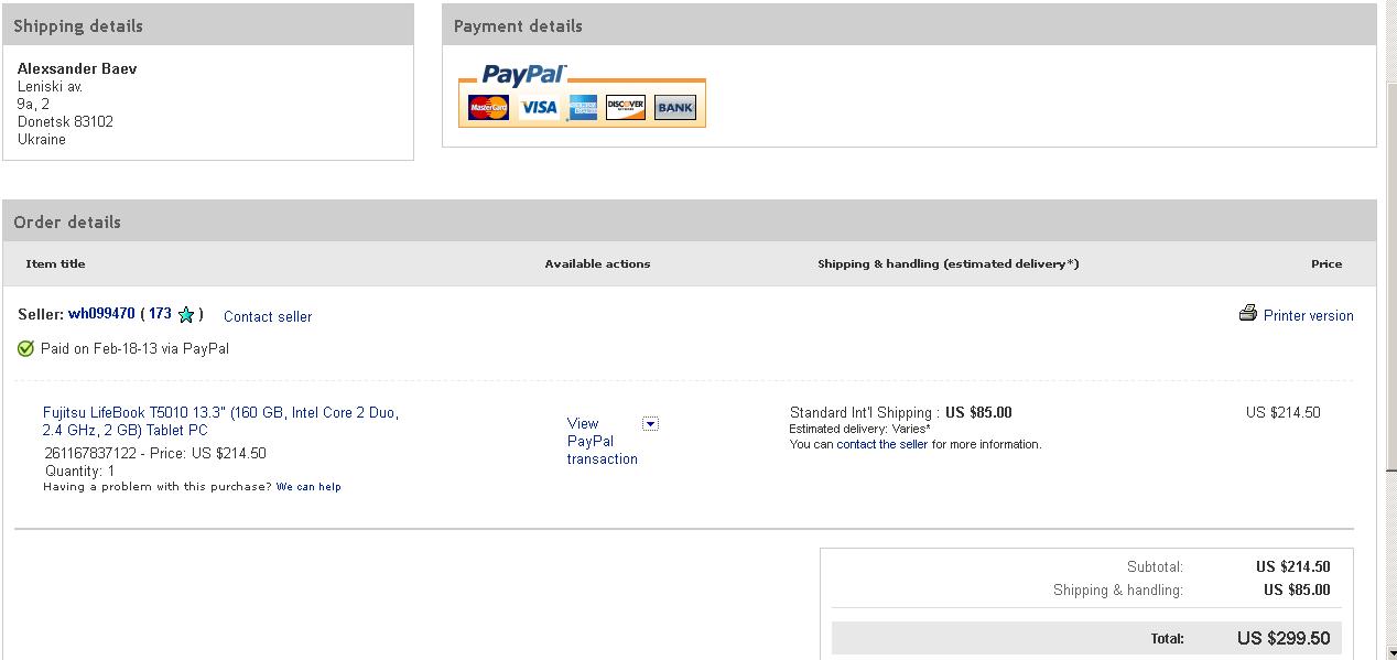 По теме скажу: - не увидел в подобном методе(по скринам), ничего предосудительного, но знаю людей которым заломили по 300 баков пересыла за один лот, именно такими методами. Учитывая даже знания нескольких способов, как избежать такого, - писал, пишу и буду писать запросы на шипинг, перед тем как ставить на лоты! п.с. а у америкосов например десятка за ноги прописана в рекомендациях, при посылке в третьи страны, - че вы тут сделаете???... это не европейцы, не церемонятся! (опыт большой такого явления, не менее 1000 писем в месяц) Добавлено: 31.03.13, 2:55 Предлагаю Вам подправить посты до приличия и отсутствия драки... человек рассказал возможности и лазейки, высказано вполне уместное возмущение, - но решать как поступать, каждому самому и в каждом отдельном случае решать. Отвечу, как бы я поступил получив такое письмо, - влупил бы законный минус... но судя по продавцам с которым покупатель имел дело с такой схемой, - матерые барыги ебея, и точно знали как отправить такого покупателя туда, откуда не так скоро возвращаются, но сделки акцептированны, минусов нет.