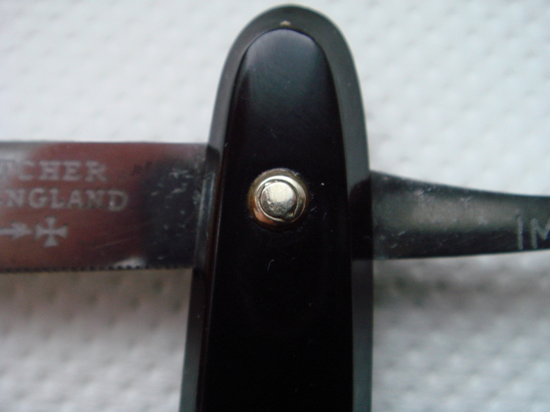 Во-2, она немного "легковесной" для такого полотна смотрится, да и форма не совсем обычная для Батчера. Насчет штампа - пересмотрел фото десятка Батчеров. Кроме самых старых клинообразных, на всех штампы мелкие по глубине. Так что вполне вероятно, что бритва оригинальная. Это я насчет эрля говорю. На полотне по-любому должно быть электрохимия/травление, никакого штампа.