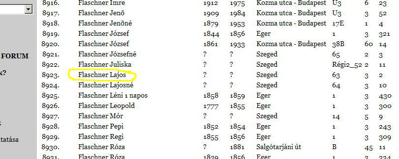 Re: Regal Flasner Lajos B'pest József-Körut 17Flaschner Lajos нашёл в архивах - дата рождения и смерти неизвестна, т.е. это имя и фамилия...