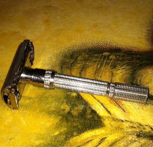Учитывая, что покупал у 3-х разных продавцов, удивлен тем, что механизм регулировки лезвия работает четко, а открытия/ закрытия крышки - мягко и плавно. Не думаю, что элементы внутри нуждаются в какой-то смазке.Полностью металлическое изделие. Кстати, последняя продукция Gillette, которая изготавливалась полностью из металла. Когда держишь в руке, чувствуется - качественная вещь. Если не удастся продать - одни станок с удовольствием оставлю себе, два других подарю друзьям Более подробная информация и цены с учетом пересылки указаны ниже. 1. M1 1967 г. Пятна на ручке, отсутствует краска на цифрах на ручке регулировке лезвия. Стоимость 32$ или 1000 руб 2. H2 1962 г. Небольшие точки на крышке. Стоимость 35$ или 1100 руб 3. I4 1963 г. Частично отсутствует краска на цифре 9. Стоимость 40$ или 1250 руб Добавлено спустя 1 минуту 21 секунду: Фотографии M1 Добавлено спустя 4 минуты 10 секунд: Фотографии H2 Добавлено спустя 4 минуты: Фотографии I4 Re: Gillette Slim AdjustableСтанок I4 1963 г продан