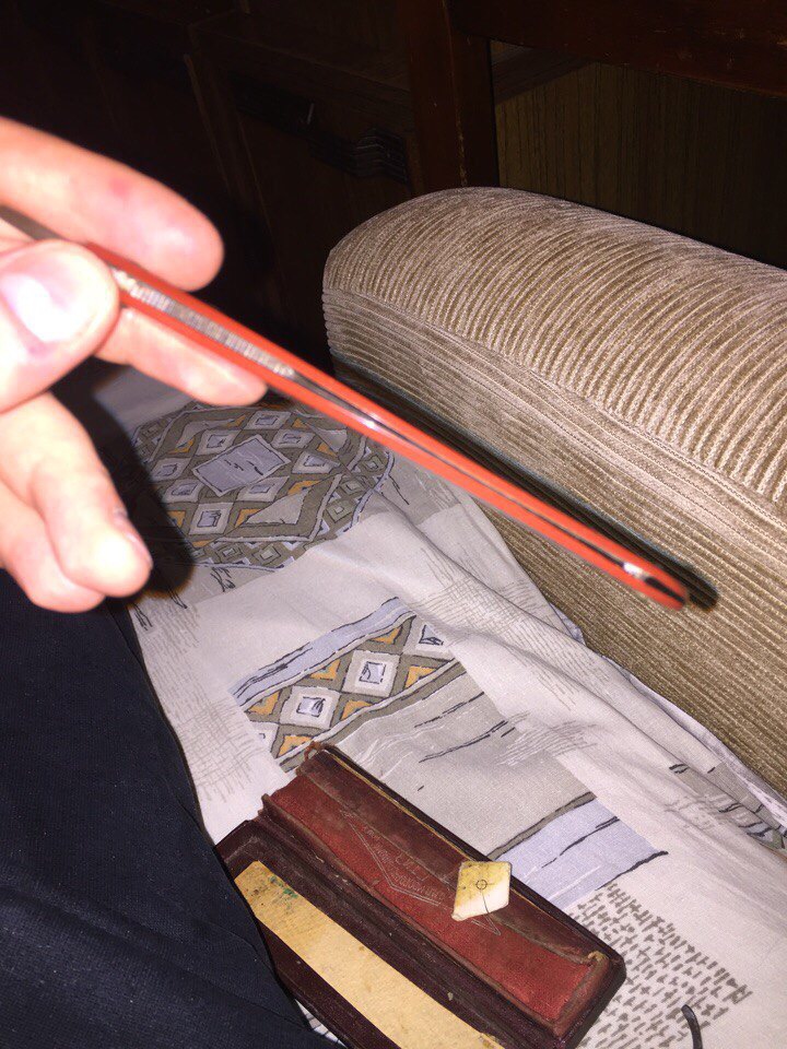 выправил. заодно, благодаря вашим советам, легко поправил еще пару ручек. у одной из бритв криво входил клин - 30 секунд в кипятке и "о чудо!". Собственно горб, что на снимках начал выпрямлять кипятком, но как-то долго это... мало-помалу и после 4 попыток, хоть и ручка стала намного приличней выглядеть, я решил воспользоваться бытовым феном. взял "узкую" насадку и перекрыл ее скотчем, оставив окошко полтара сантиметра в диаметре. Все прошло легко и просто, без эксцессов. Так что, далеко ходить не надо) Всем спасибо за внимание.