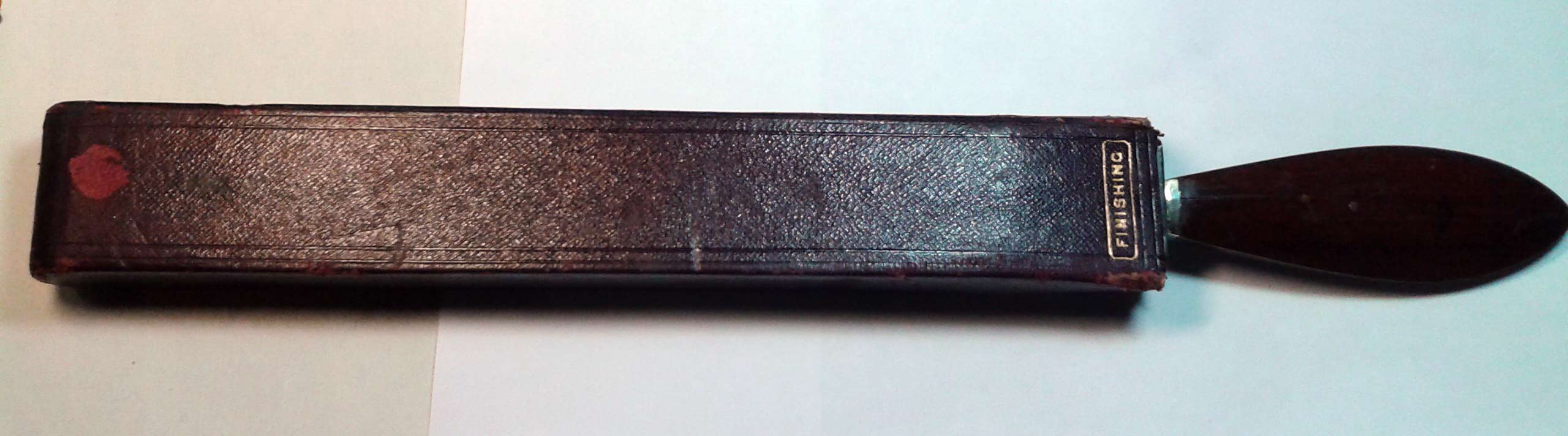 Страна производства неизвестна, предполагаю Англию - по источнику поступления. Механизм в полностью работоспособном состоянии, позволяет натянуть кожу очень туго, что важно во избежание заваливания режущей кромки бритвы. Кожа родная, восстановил до рабочего состояния. На одной стороне в начале правки есть поверхностный порез. Так как он находится в самом начале правки, то процессу не помешает, поэтому снимать слой кожи со всей поверхности не стал - видно на фото. В комплекте футляр из картона во вполне живом состоянии, хотя подклеить надо. Общая длина правки 37,5 см, длина рабочей части 22 см, ширина ремня 3,8 см.