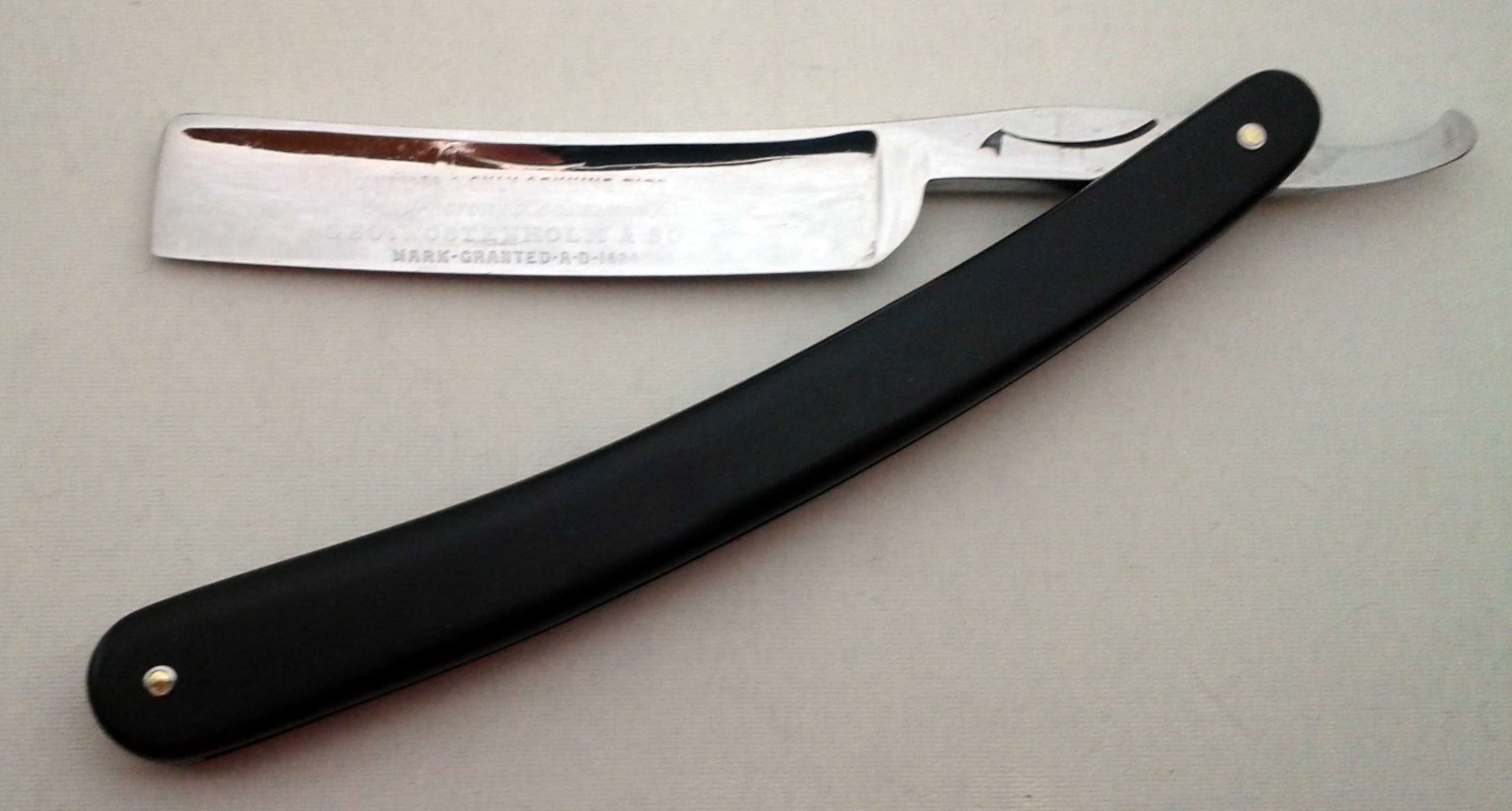 Бритва произведена в Шеффилде (есть фото клейма MOILLIET&GEM'S SHEFFIELD http://www.bladeforums.com/forums/showt ... eld-Dagger" onclick="window.open(this.href);return false;). Ручка - эбонит. Заточена и полностью готова к бритью. Ширина полотна 17 мм, толщина в обушке 5 мм.