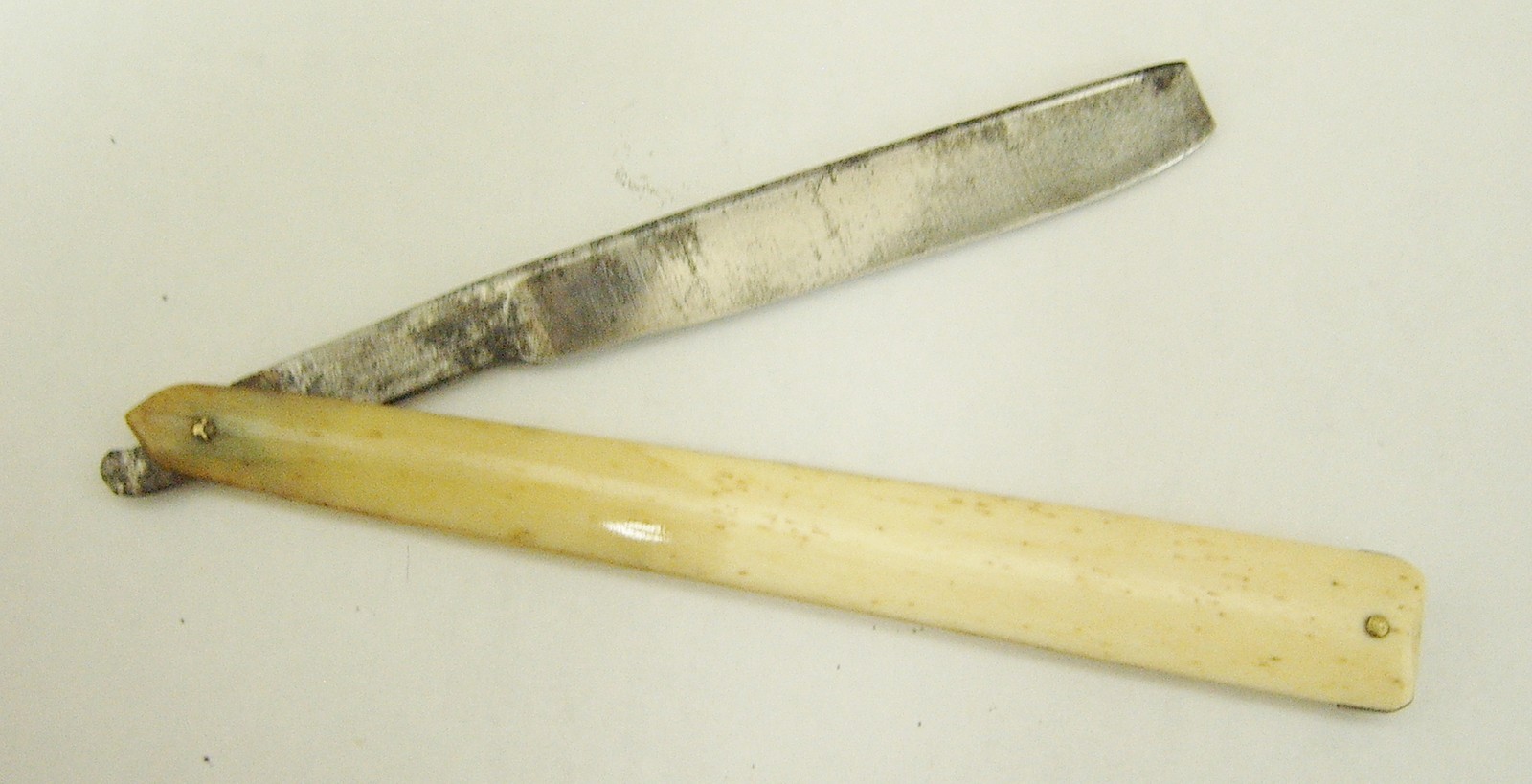"It has white bone handles that is in great condition for age. The blade and handle has NO chips or cracks. A very nice OLD collectible razor."