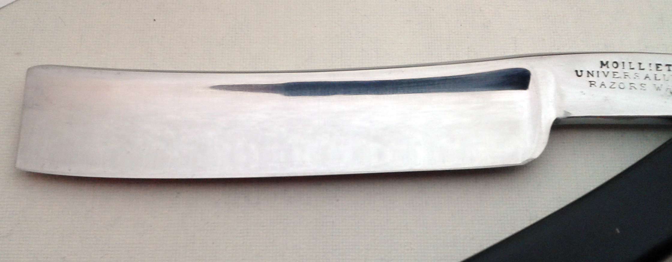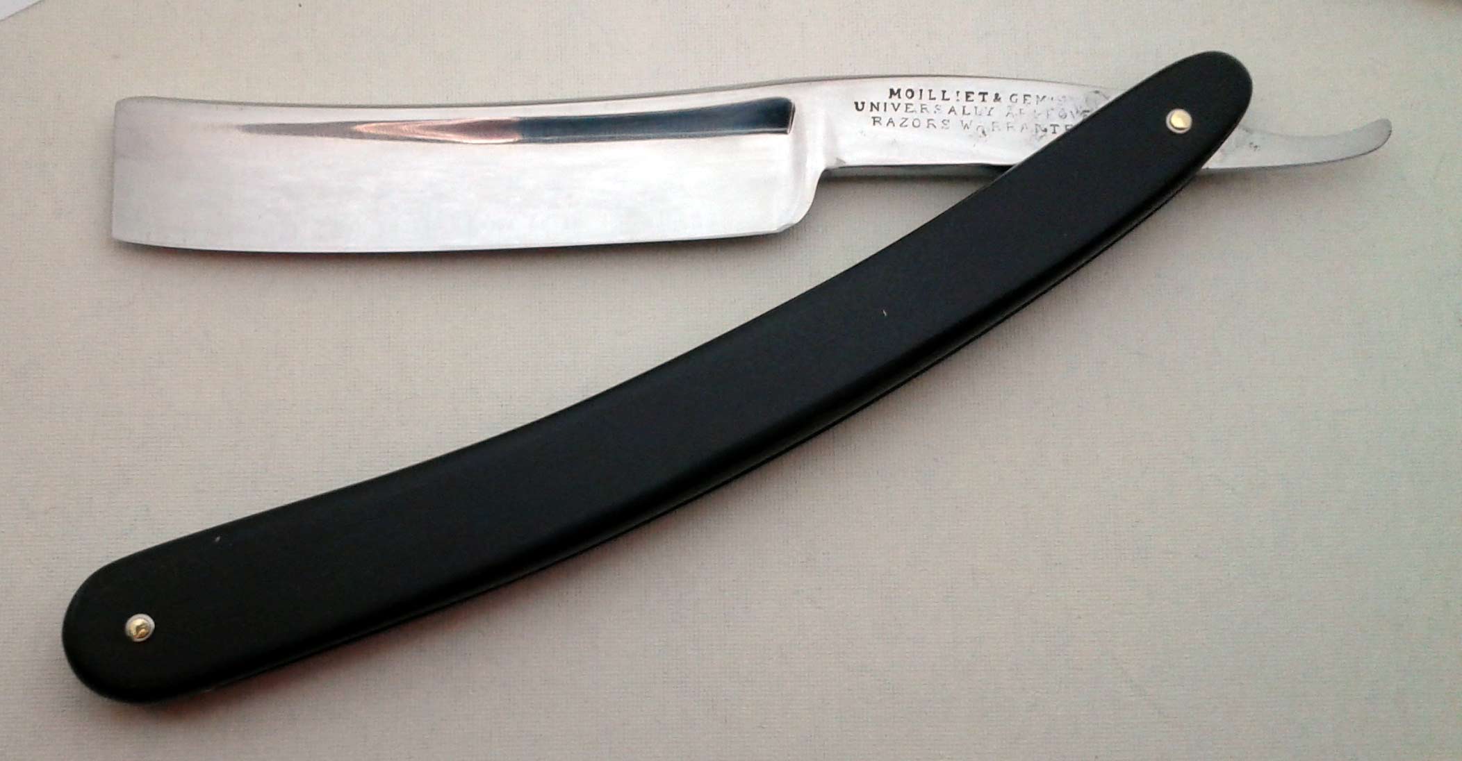 Бритва произведена в Шеффилде (есть фото клейма MOILLIET&GEM'S SHEFFIELD http://www.bladeforums.com/forums/showt ... eld-Dagger" onclick="window.open(this.href);return false;). Ручка - эбонит. Заточена и полностью готова к бритью. Ширина полотна 17 мм, толщина в обушке 5 мм.