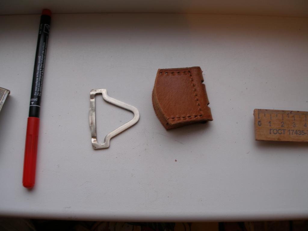 Тогда примеряем скобу к кожаному зажиму, а его к нашему ремню.