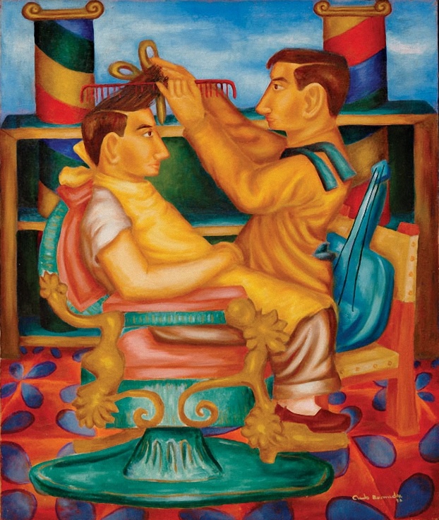Re: Опасная бритва в искусстве ( картины, рисунки, фото, тату) Серия художественных работ о парикмахерах, цирюльниках и брадобреях! Бурлюк Давид Давидович Парикмахер без головы. Ок. 1912. Часть вторая Show Bohrod Aaron The Haircut.