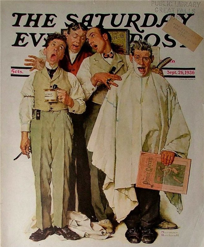 Re: Опасная бритва в искусстве ( картины, рисунки, фото, тату) Серия художественных работ о парикмахерах, цирюльниках и брадобреях! Неизвестный художник Beim Friseur. Часть пятая Show Norman Rockwell