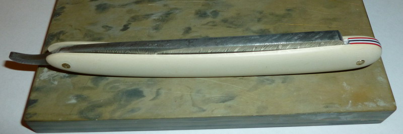 Попробовав много пришел к тому какие параметры главные в подборе ручек. И как ни странно главные это во первых здоровье, во вторых трудоемкость, потом жесткость, потом красивость ну и куча других - надо отдельную тему будет создать, обсудить. Но вот это бумажная микарта цвета слоновой кости. Обрабатывается легко, не так вредна для здоровья как карбон и стеклопластик. Глянца не дает, а имитирует именно структуру мамонта. ВО еще н решил придать глянец сверху чем нибудь и оставить так - хотя это поверхность после 1500 грит. Жесткость сравнима с G10 а по сути многократно жестче кости, так что не прогибается от нажатия, к воде инертна. Но от рук чуть чуть пачкается прям как кость. Бритва - дамаск одного из мастеров нашей необъятной раши. Бритва не моя, взялся помочь сделать ручку. Пофоткал как смог, как со вспышкой так и нет, чтобы текстру по разному подчеркнуть Проставка неизвестный пластик купленный на просторах сети с запасом разных цветов.