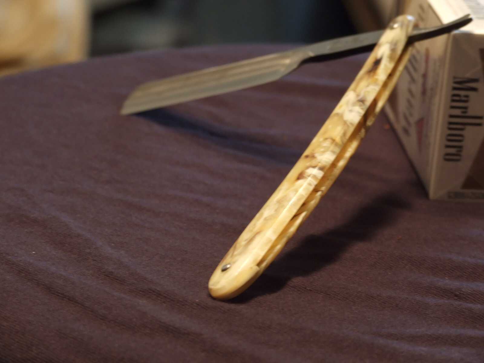 2. Найти температуру, при которой ручка хорошо гнётся. 3. Нагреть, зажать между двумя ровными плоскостями. 4. Дать остыть. Если удасться найти чем нагреть, результат будет хорошим. Я грел паяльным феном (маленький такой, размером чуть больше паяльника). Ремонт опасных бритв, звонить с 11-00 до 23-00, +79267729357, (viber, whats app, telegram, VK), спросить Олега.