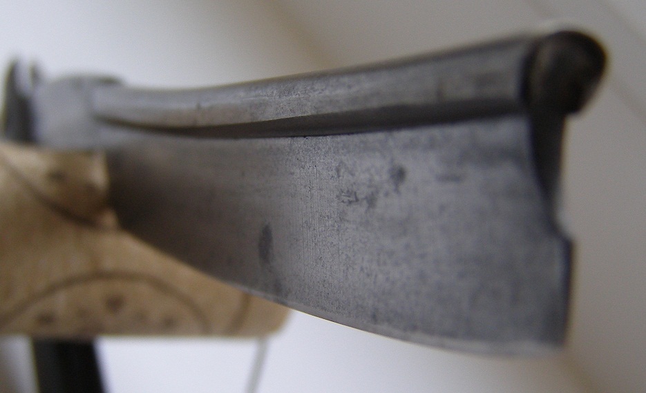 Spoiler Show просматриваются остатки клейма "...Sons", "...razor", "...works", "...ffield" hollow ground. Оправа (рог), оригинальная или нет - не понятно. Ширина 13/16, обушок 5,3 Цена: 25 евро (доставка за мой счёт, оплата - "Приватбанк", "Контакт", "Золотая корона", "Western Union") Spoiler Show