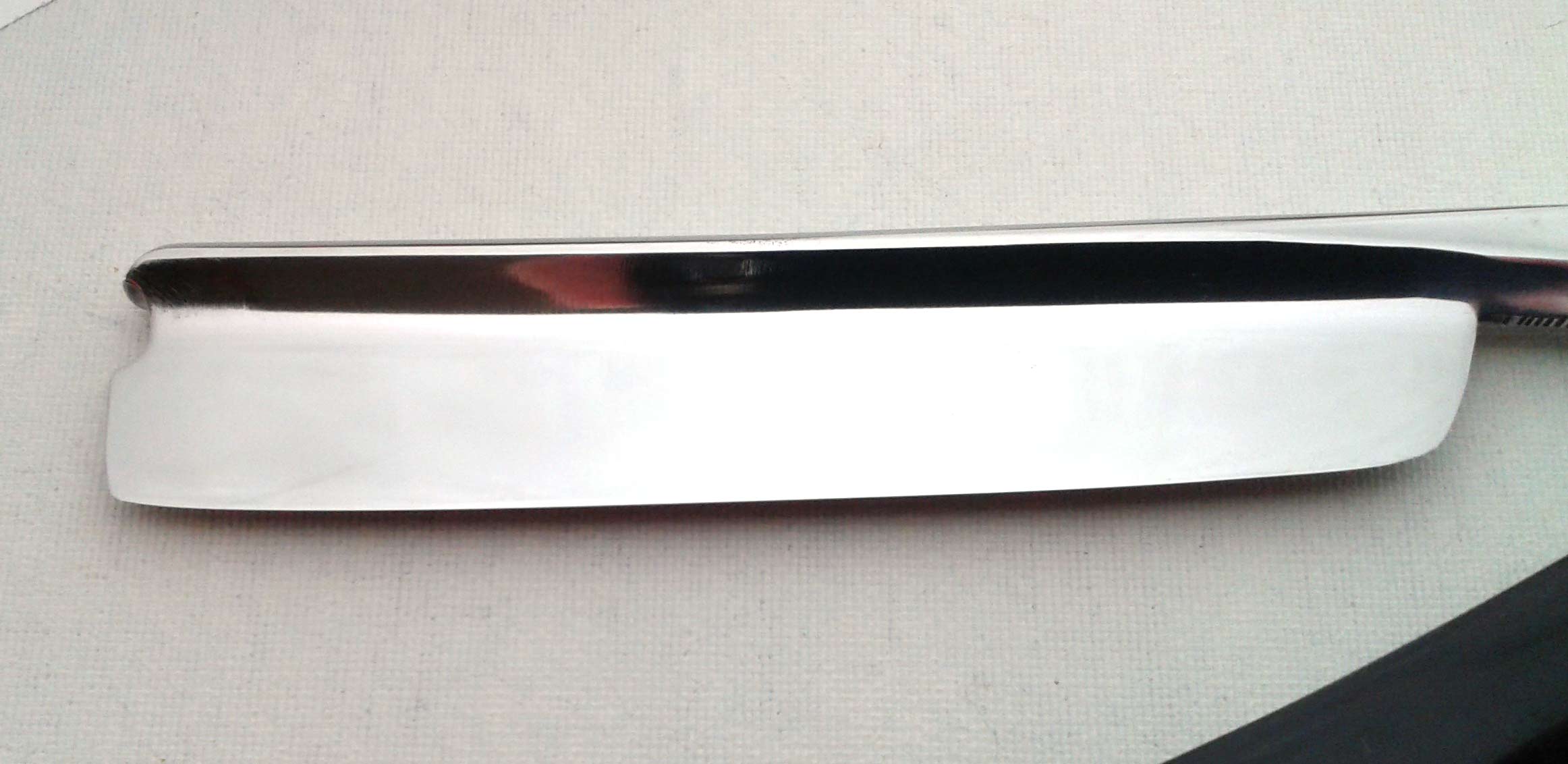 Spoiler Show Дальнейшая надпись читается плохо, но можно предположить что-то типа POND WORKS, SHEFFIELD. Надпись на полотне ROXO Сведения о производителе: http://britva.ru/forum/viewtopic.php?f= ... ers#p50963" onclick="window.open(this.href);return false; Ручка - натуральный рог в хорошем состоянии. Клинышек - металл. Свинец/олово клинышка окислилось и имеет неровности, однако свою функцию выполняет исправно. По-видимому, ручка, клинышек и пины родные. Заточена и полностью готова к бритью. Ширина полотна 16.5 мм, толщина в обушке 4.5 мм. Цена 70 евро, доставка включена.