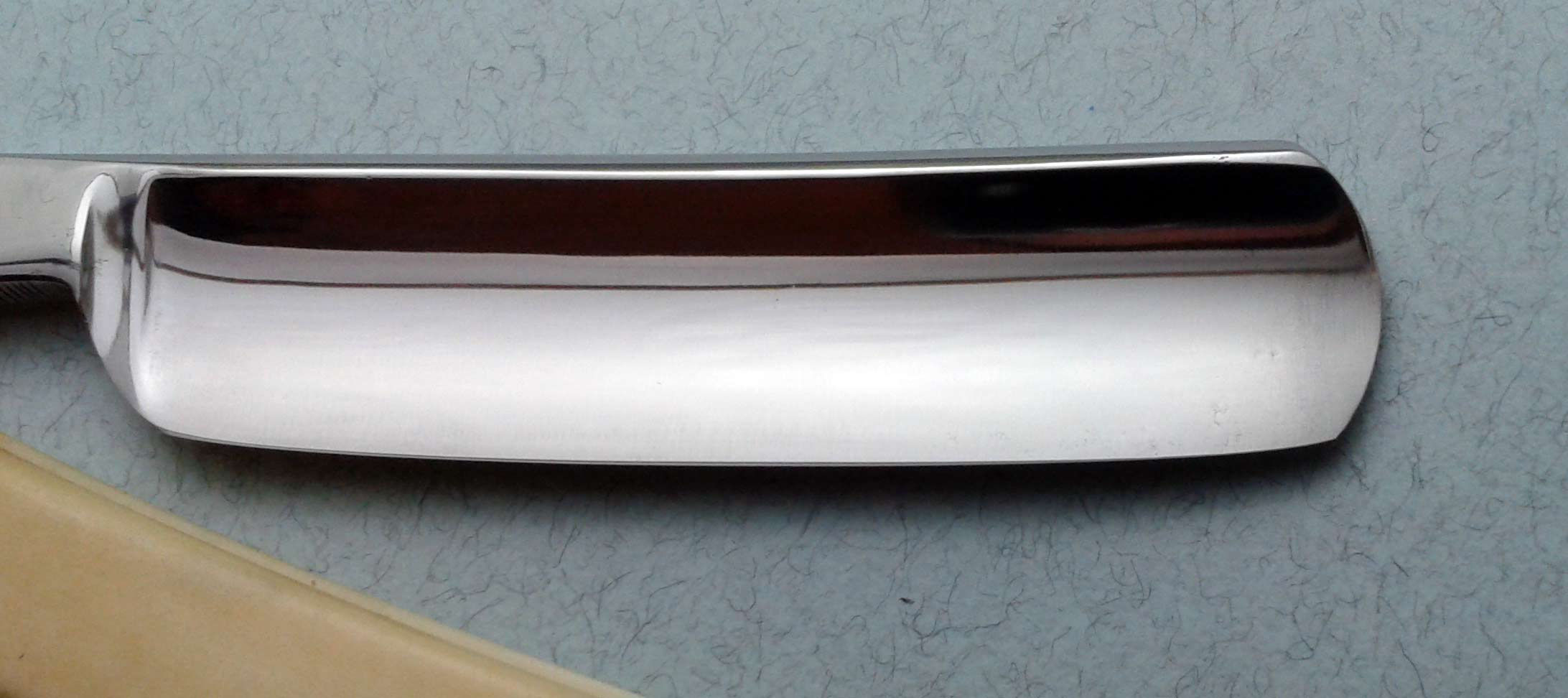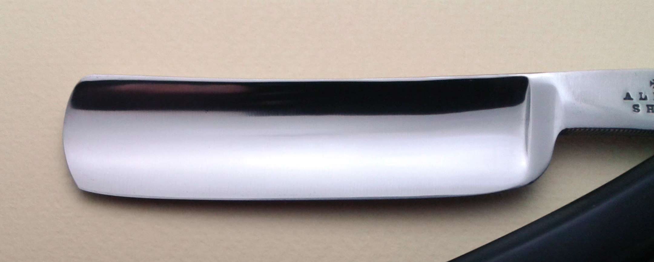 Довольно старый холлоу граунд - по форме хвостовика и надписи можно говорить о конце XIX-начале XX века. А если судить по инфе из http://britva.ru/forum/viewtopic.php?f= ... ilit=Allen" onclick="window.open(this.href);return false;, то бритва произведена до 1890 года. Ручка - эбонит, в отличном состоянии, есть коричневый "налет времени", клинышек - металл. Заточена и полностью готова к бритью. Ширина полотна 19 мм, толщина в обушке 5 мм.