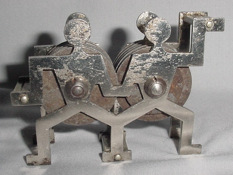 Прокладкой между частями ручки служит свинцовый металл. К сожалению, такие перламутровые ручки довольно хрупки. Большая удача для современного коллекционера – найти образец этой красивейшей ручки без трещин и сколов. Мне повезло найти две такие бритвы, но обе были со сломанными ручками. Было отмечено, что ручки были разных размеров под разную ширину бритв.