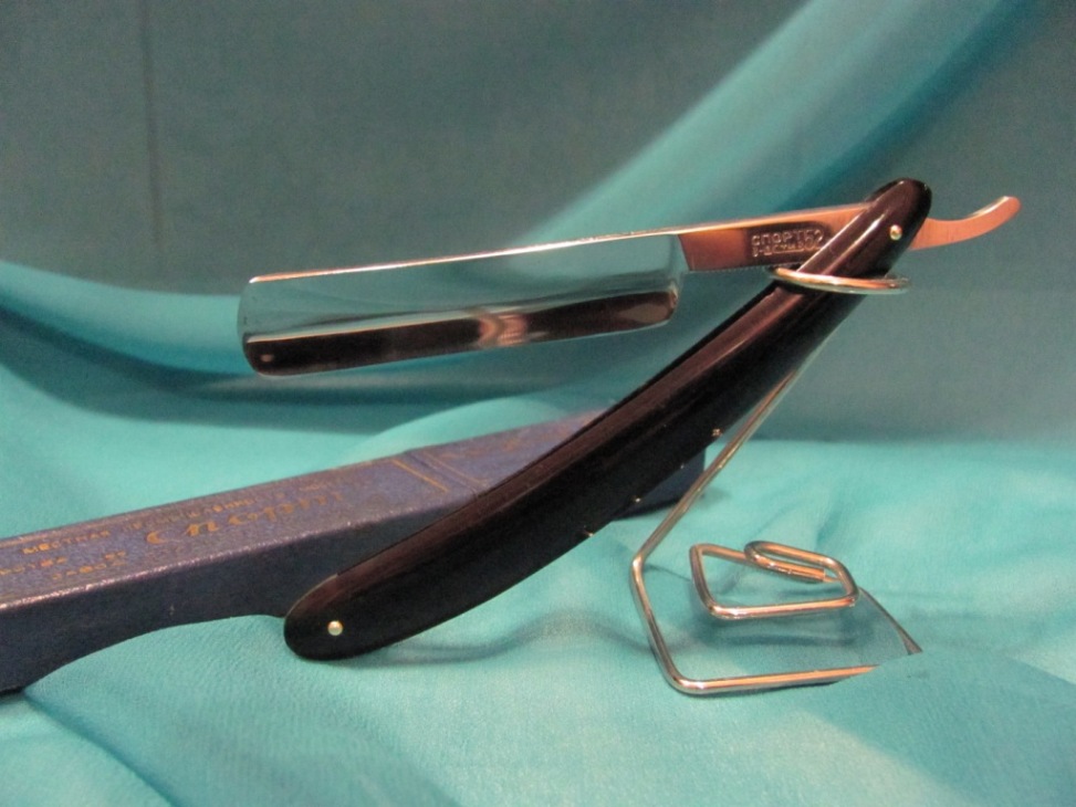 Параметры: ширина полотна 16.5 мм, обух 4.3 мм Ручка: пластик, собственная работа, дизайн в духе современности. Инфа по ТМ: http://britva.ru/forum/viewtopic.php?f= ... lit=Figaro" onclick="window.open(this.href);return false; Состояние: так как возраст почтительный, имеются следы времени. Заточена и готова к бритью. Продана. Figaro Show
