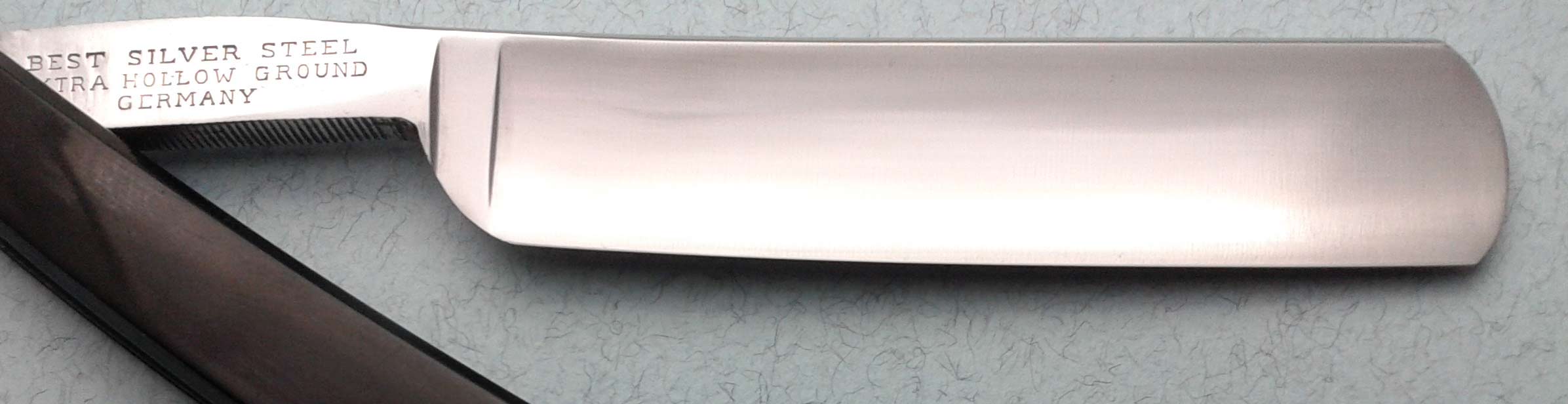 Ручка - эбонит, в отличном состоянии, по-видимому, родная. Этой бритвой побриться не успел пока, но как всегда, хочу особо отметить Silver steel. По моему мнению, это очень удачная сталь на немцах, отлично держит заточку и при этом комфортна в бритье. Заточена и полностью готова к бритью. Ширина полотна 17 мм, толщина в обушке 4.5 мм.