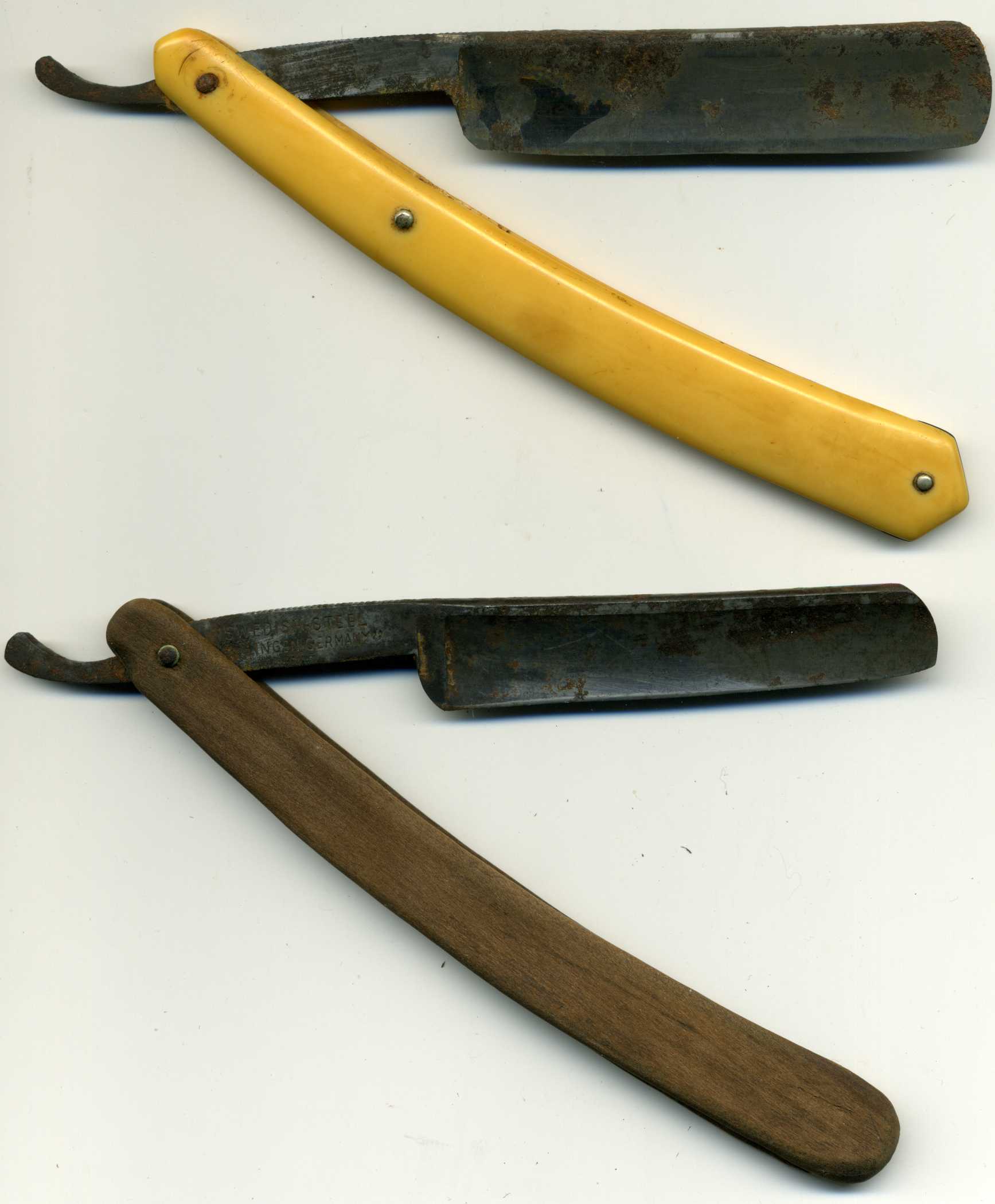 1. ERN - ручка пластик (или целлулоид), с металической вставкой логотипа. 2. REGILO, на обороте надпись swedish steel \ solingen germany, ручка дерево. Если заинтересует - прелагайте свою цену. С уважением Вадим. опасной бритвы времён СССР : ОСОБАЯ, Столичная, ЯХТА, Волга, Заря.Предложу вот такие бритвы советского производства , к сожалению пребывавшие в агресивной среде, что оставило следы на их лезвиях. Состояние на сканах.
