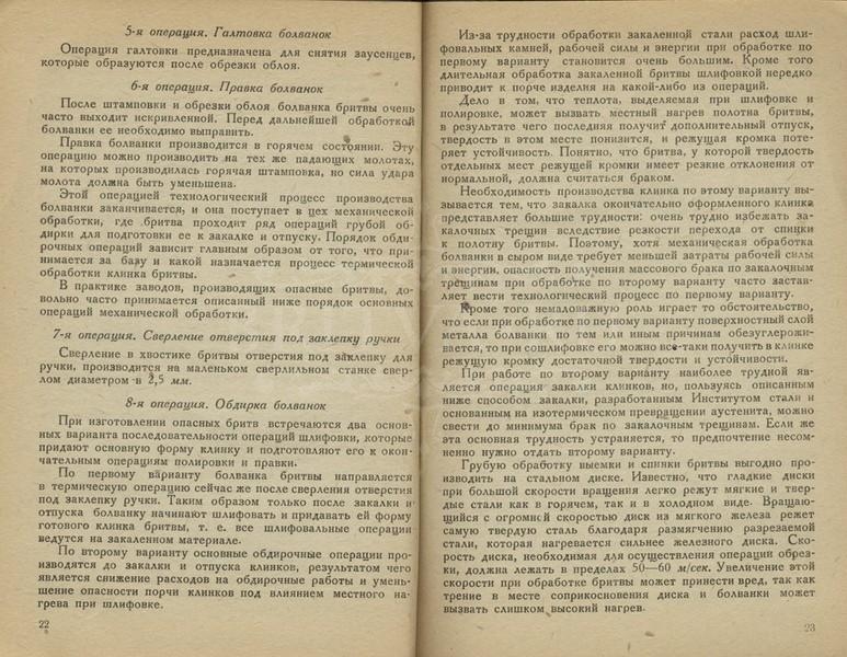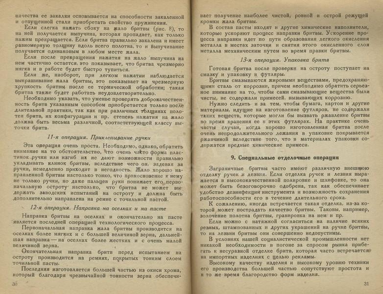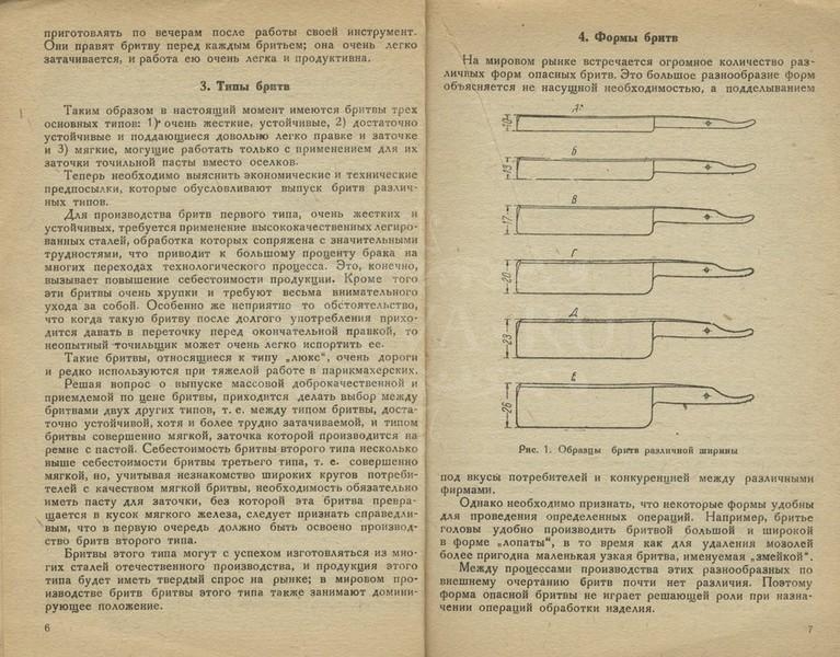 Брошюра *Ремонт опасных бритв*Кстати, вот еще книжечка интересная - "Производство опасных и безопасных бритв" С. В. Помельцов 1939 г.в.