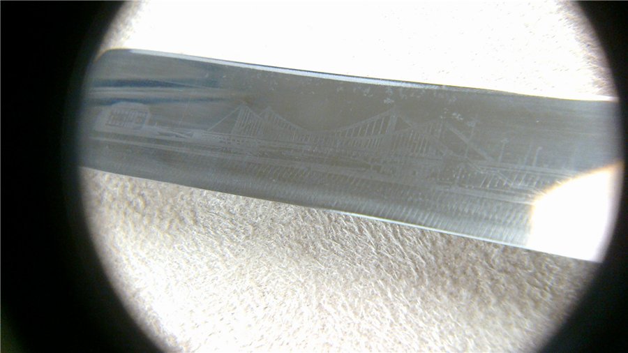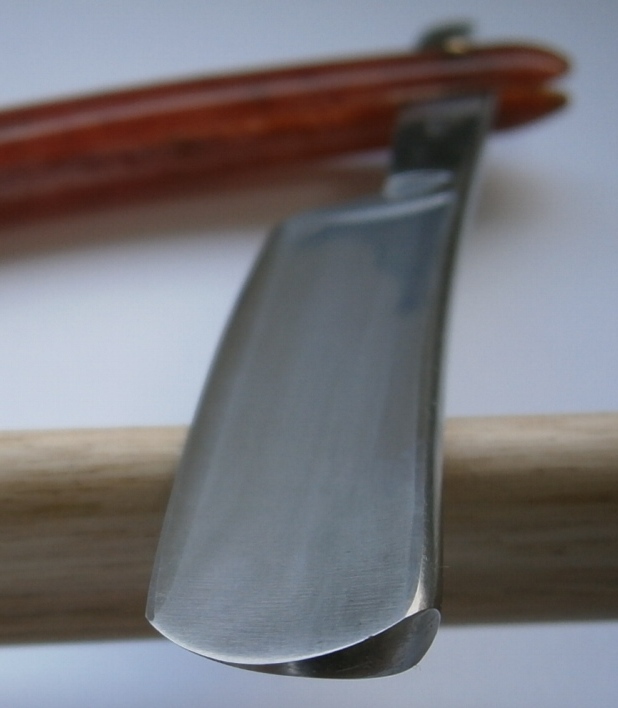 Немного не понял, какой именно снимок режущей кромки Вас интересует. Общее состояние или характер заточки? Я ,наверное, дал неконкретное описание. Бритва незаточена. Она НЕ неточена. Она не новая. Она просто тупая. Имел место неравномерный износ порядка 1мм (это ,кажется , называется "улыбка"). Он был убран на чугунном притире со свободным белым электрокорундом М40 ,без касания обушком , полоскательными движениями, положение бритвы перпендикулярно движению, чтобы не нарушить родную симметрию. Собирался оставить себе. Но после выравнивания выяснилось, что она требует заточки на узких камнях, а я в этом пока не силен. Это просто старая бритва "хороших" годов выпуска в хорошем состоянии. Травление "снес" по неосторожности, когда чистил. Оно было очень четким. Извините, для меня это не было важным - не реставратор. По режущей кромке: сколов нет, микротрещины,видимые в лупу, отсутсвуют.Надеюсь, Вы не будете возражать, если я не буду ее фотографировать. Вот написал. Не думаю, что эта бритва стоит того времени, что я потратил на этот опус. Просто хотелось, чтобы у участников форума не осталось разночтения. Не сочтите за сарказм. С уважением Эдуард.