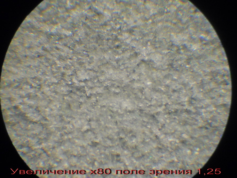 Микроскоп у меня БИОЛАН - ЛОМО со стереонасадкой и микрометрическим столиком. Минимальное увеличение х80. Снимать правда неудобно: выходной зрачек всего 7 мм. Прицеливаюсь в него мыльницей.