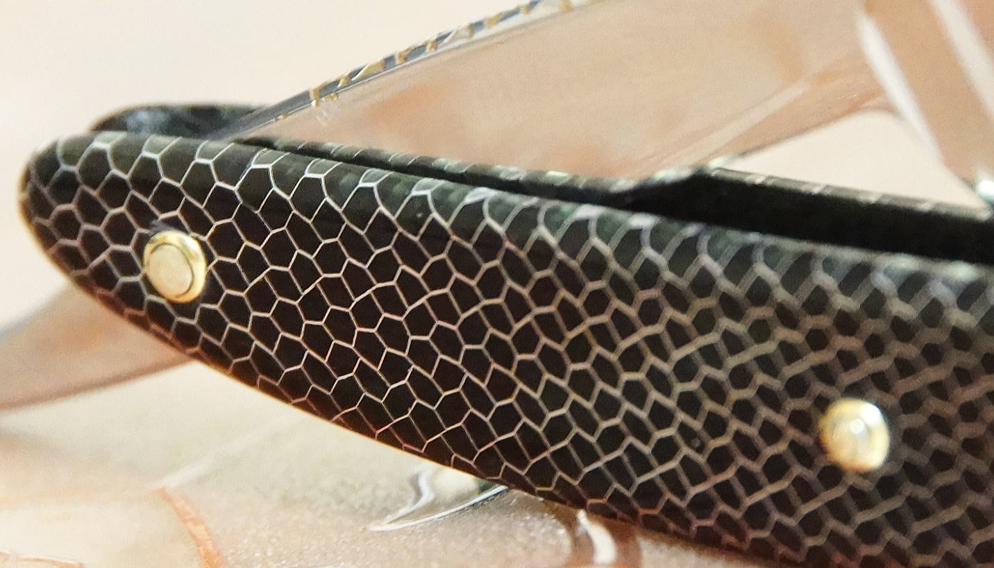НИЧЕГО, ПОКА, Я НЕ УМЕЮ! Но и понял ещё одно- обязательно научусь! На белые точки не смотреть - это блики. Фото домашнее, это не профи! Представляю свою работу - восстановление бритвы с гнутыми рогами ADRESSO. Работа - мой полный эксклюзив. Spoiler Show Ремонт опасных бритв, звонить с 11-00 до 23-00, +79267729357, (viber, whats app, telegram, VK), спросить Олега.