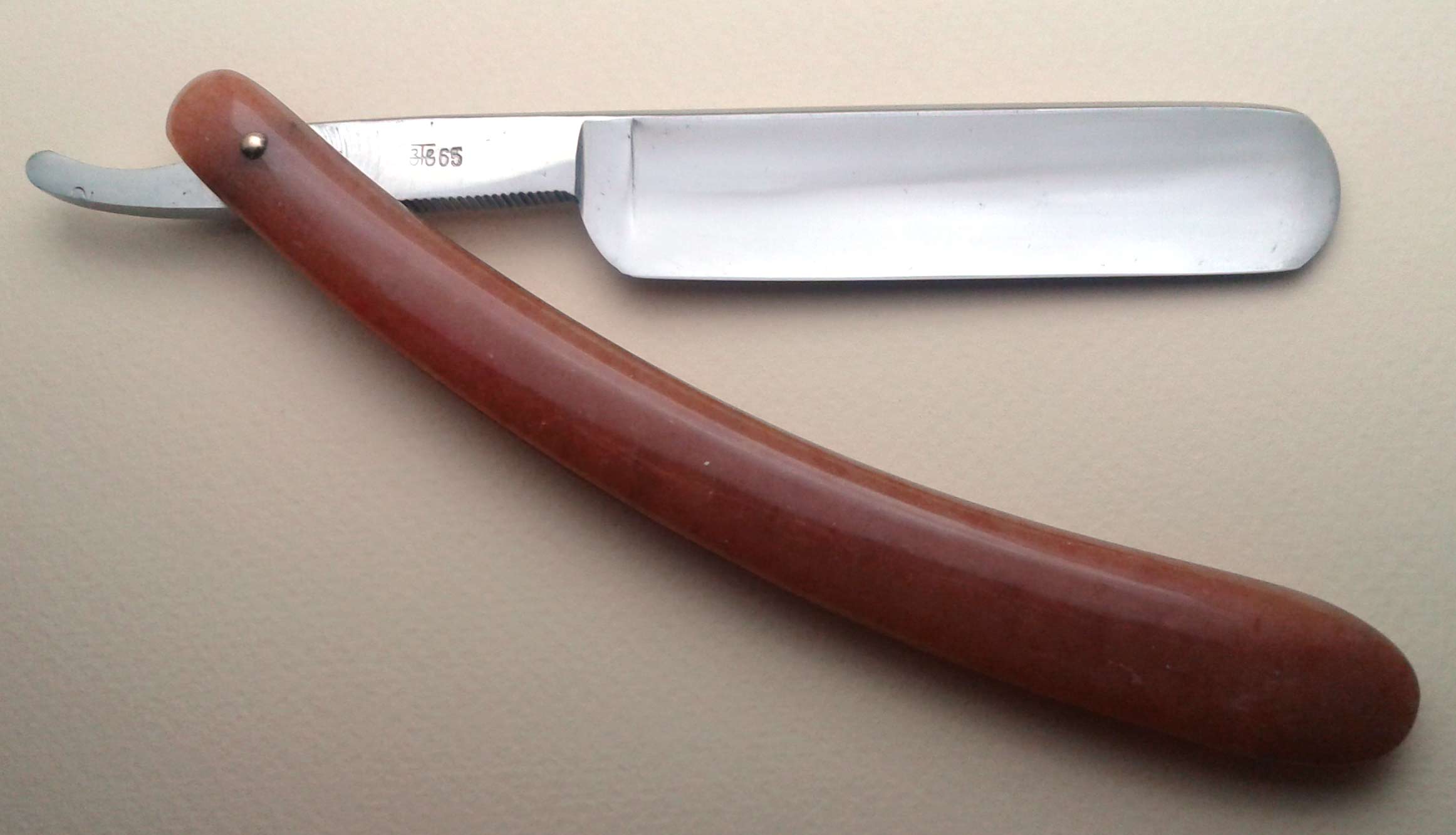 Ручка - натуральная кость, в прекрасном состоянии. Клинышек - металл. Заточена и полностью готова к бритью. Ширина полотна 19 мм, толщина в обушке 5 мм.