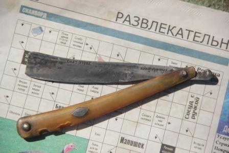 Просьба оценить.Давно лежала у меня сиё чудо и никак руки не доходили разместить фото и спросить что стоит бритва в таком состоянии? Как я понимаю,это конец 18 начало 19века и ручка с пинами,вроде родные.
