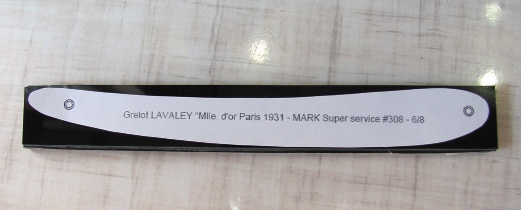 Старая ручка была покусана грызунами, полотно было грустно улыбчивым. Было принято решение одеть достойную бритву в копию оригинальной ручки и привести в порядок полотно. Кстати, сталь у Grelot действительно прекрасна. Получил огромное удовольствие при выполнение этого заказа. покусанная ручка Show