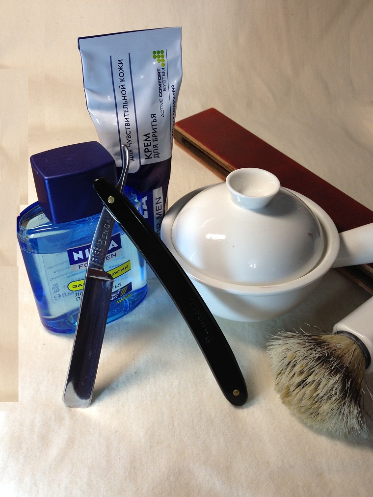 Сегодняшнее бритье : Бритва : Cadman and Sons Bengall 4/8 Помазок : чешский барсук Крем : Nivea Лосьон : Nivea Чаша : куплена в магазине "все для дома" Правка : от N*X*S Присоединяюсь к пожеланиям "Ложки нет"