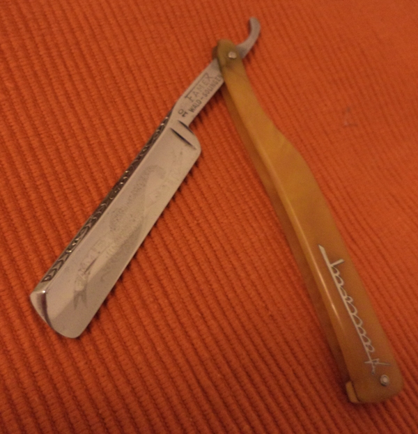 Re: Обратная улыбкаДа мне тоже так показалось Бритва старенькая - но очень приятная в руке - обушок не сточенный совершенно Я просто не в курсе - бывает так - что обух - улыбка - а РК - прямая ? Если так и было - то изменения в РК минимальные "Следы времени" есть - но толи старательно убраны - то ли мало их совсем Вот ручка - на замену вероятнее всего - какая то она подубитая внутри Re: Обратная улыбкаБывает. Почти прямая.