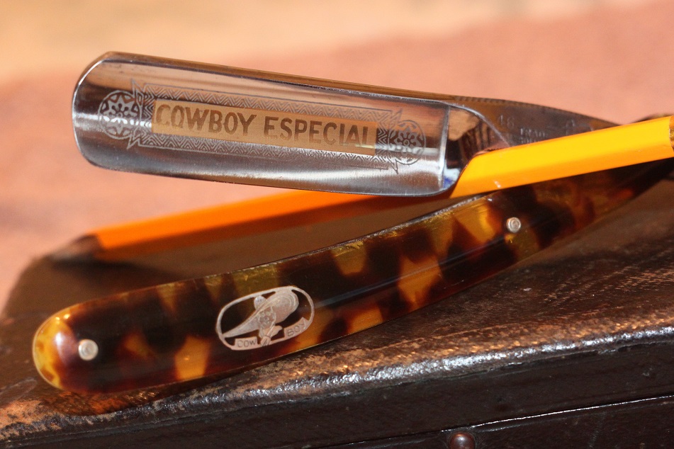 Klinge / Blade: Carbon steel, etched logo " COWBOY ", fullhollw ground, satin polish