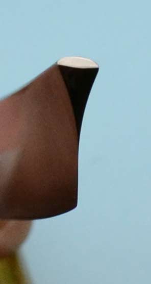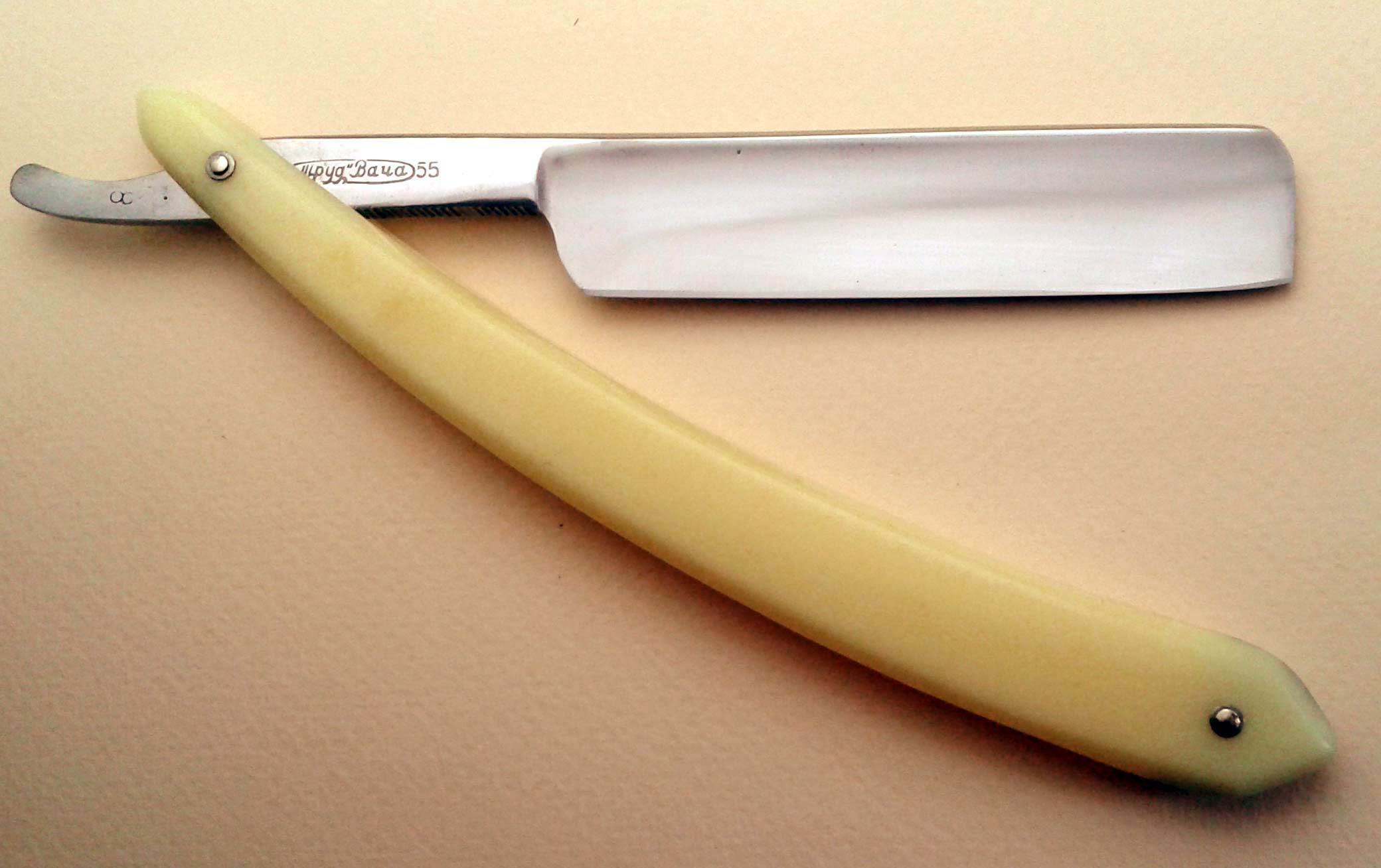 Сведения о производетеле http://britva.ru/forum/viewtopic.php?f=27&t=205" onclick="window.open(this.href);return false; Ручка - пластик. Возле головной заклепки имеется трещина. Проклеена цианакрилатом, при нормальном использовании проблем не будет. Бритва весьма немного точилась, довольно близка к заводской геометрии. Заточена и полностью готова к бритью. Ширина полотна 20 мм, толщина в обушке 5 мм. В комплекте родной футляр, состояние не лучшее, но ремонту подлежит. Цена 60 евро, доставка включена.