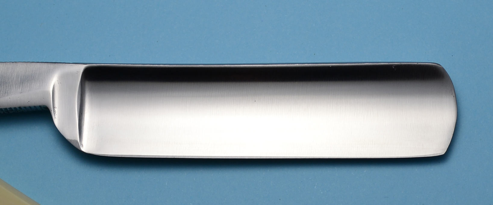 Ручка из целлулоида, в отличном состоянии, родная. Смело могу рекомендовать данную бритву для бритья, особенно для пользователя с опытом. Примерно 3 месяца назад купил себе точно такую же бритву и с тех пор ей брился бОльшую часть времени. Очень чисто выбривает за счет своей клинообразной геометрии и при этом весьма мягко и беззвучно работает. К сожалению, не удалось сделать адекватные фото. Создается впечатление, что РК с "обратной улыбкой", но это не так. РК слегка выпуклая - это лучше видно на последнем фото, где показана геометрия бритвы. Заточена и полностью готова к бритью. Ширина полотна 13 мм, толщина в обушке чуть меньше 4 мм. В комплекте штатный футляр.