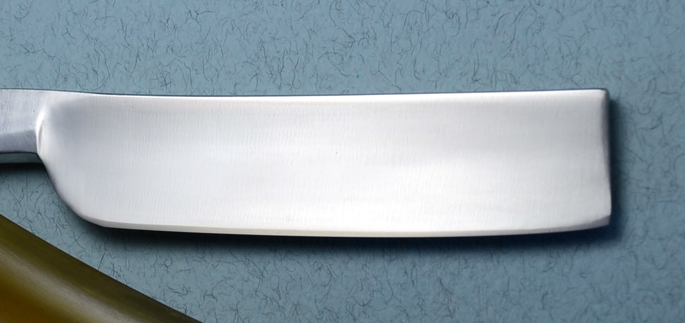 Сведения о производителе: http://britva.ru/forum/viewtopic.php?f= ... ill#p34742" onclick="window.open(this.href);return false; Ручка - из рога, в очень приличном состоянии, клинышек из металла. Заточена и полностью готова к бритью. Ширина полотна 19 мм, толщина в обушке 5 мм.