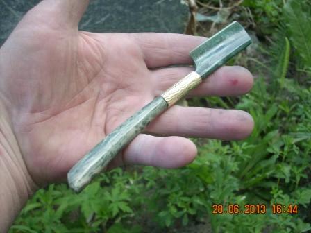 Текущее время: 12.02.26, 19:58 А вот и ещё одна каменная.Модераторы: Олег Бритва, Модераторы А вот и ещё одна каменная.Сделал так, для пробы камня. На этот раз использовал жадеит, ювелирно-поделочный. Рукоять яшма. Свёл почти в ноль. Попробую править. Может получится..
