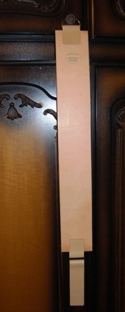 Re: Изготовление ремней для правкиСделал вот такую правку из отборной мониной стропы - кожа очень твёрдая .гладкая и ровная - даже близко такой ещё не видел ..