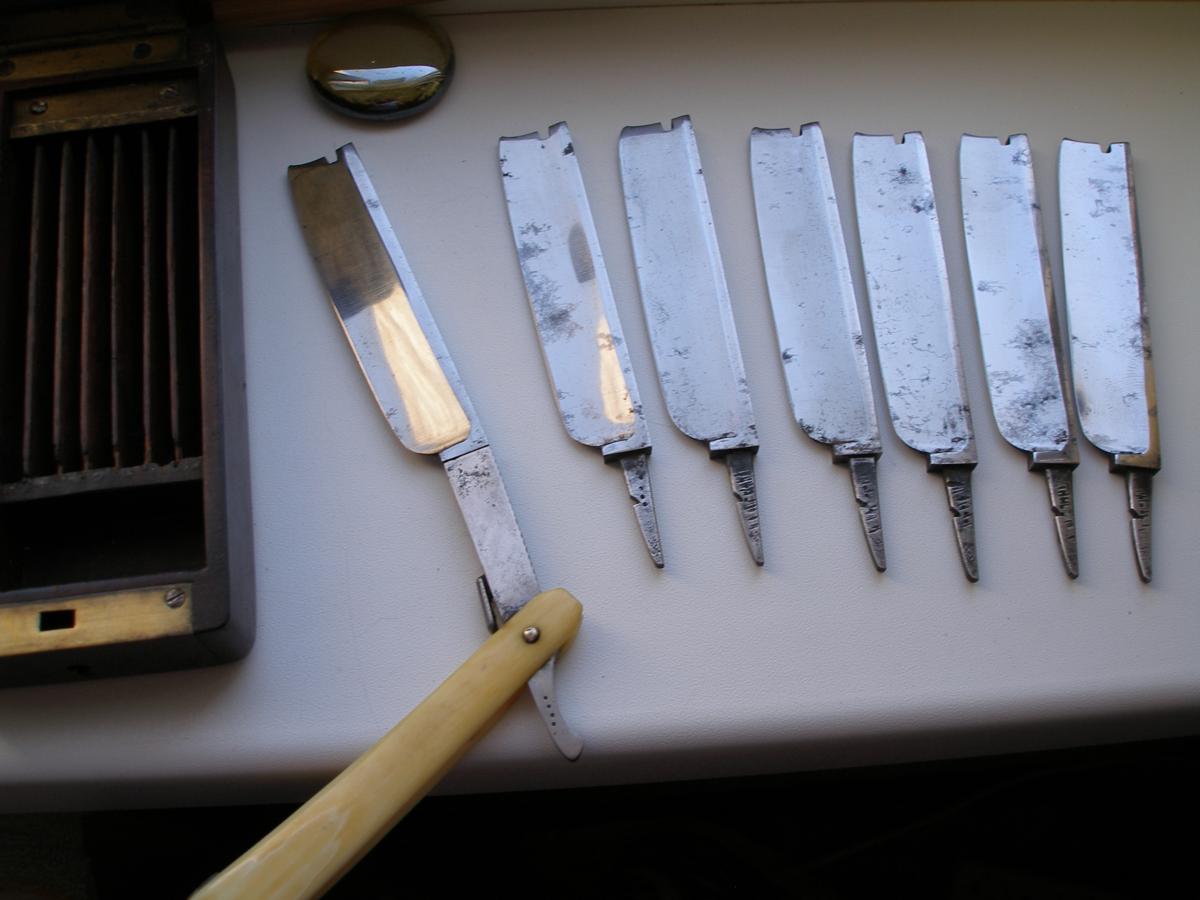 Re: Заточка на камняхШикарный наборчик! Ну у этих бритв не должно быть проблем с лежанием на камнях.. Я сам точил пару-тройку улыбчатых батчеровских клинов, проблем не возникало.. Ровности геометрии тех бритв может позавидовать любая более молодая бритва. Челябинские мужики настолько суровы, что правят бритву не на ремне, а на роже.