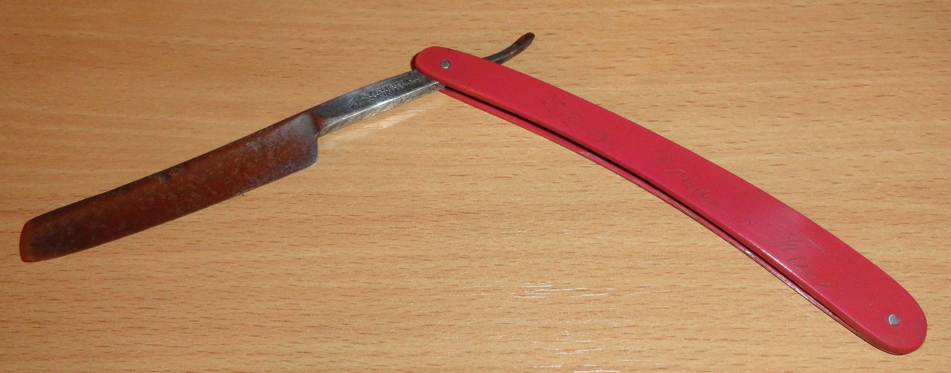 От ручки ржавчина - то известная давно история, замечено только у пластиковых ручек, в основном немецких ближе к 1930-м годам с черепаховой расцветкой (может меня поправят). У самого была такая бритва с ручкой волшебной - где с ручкой рядом железо находится там ржавеет рыжим за день! Может заколдованные ручки, а может состав пластика вносили что то неведомое.