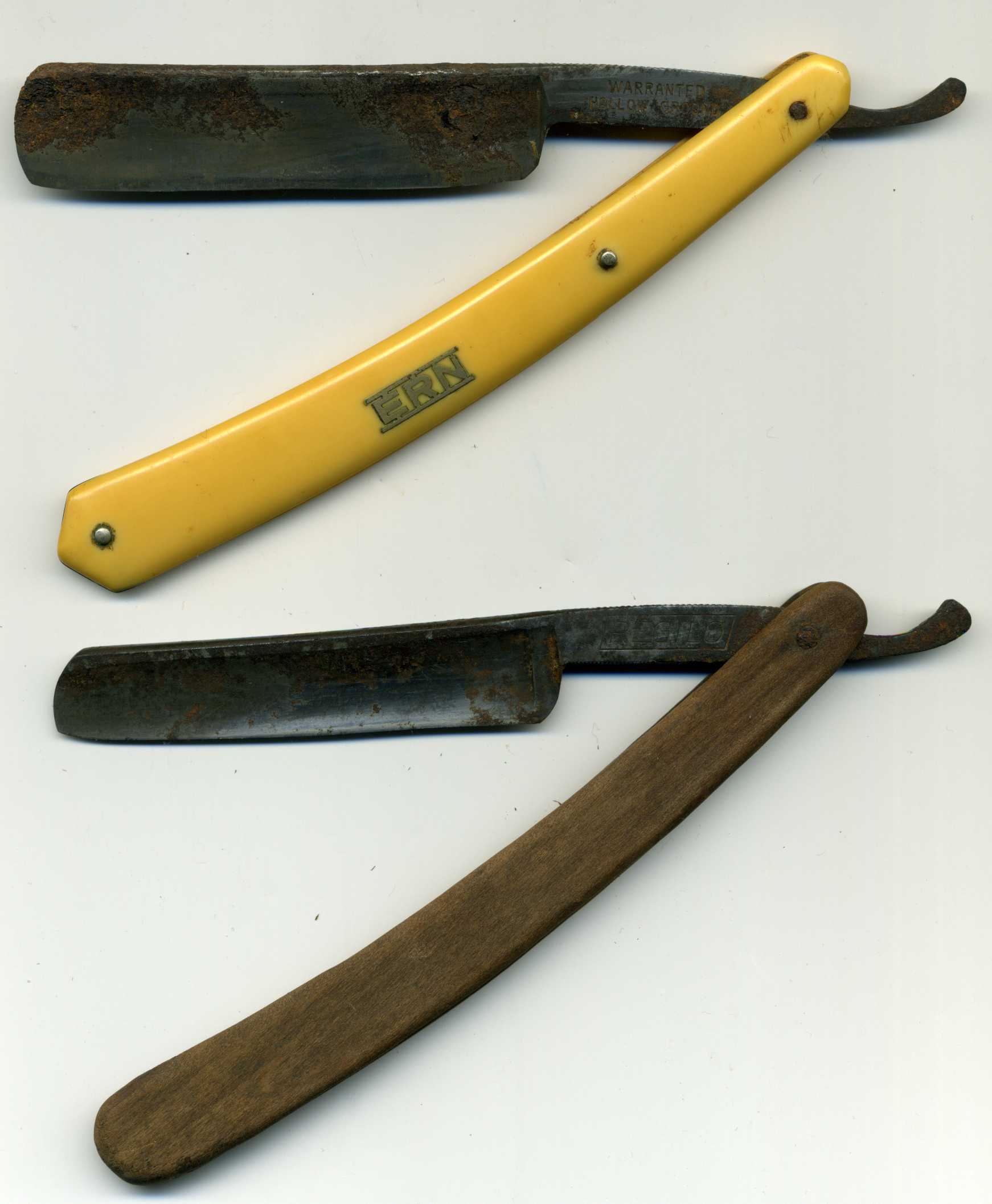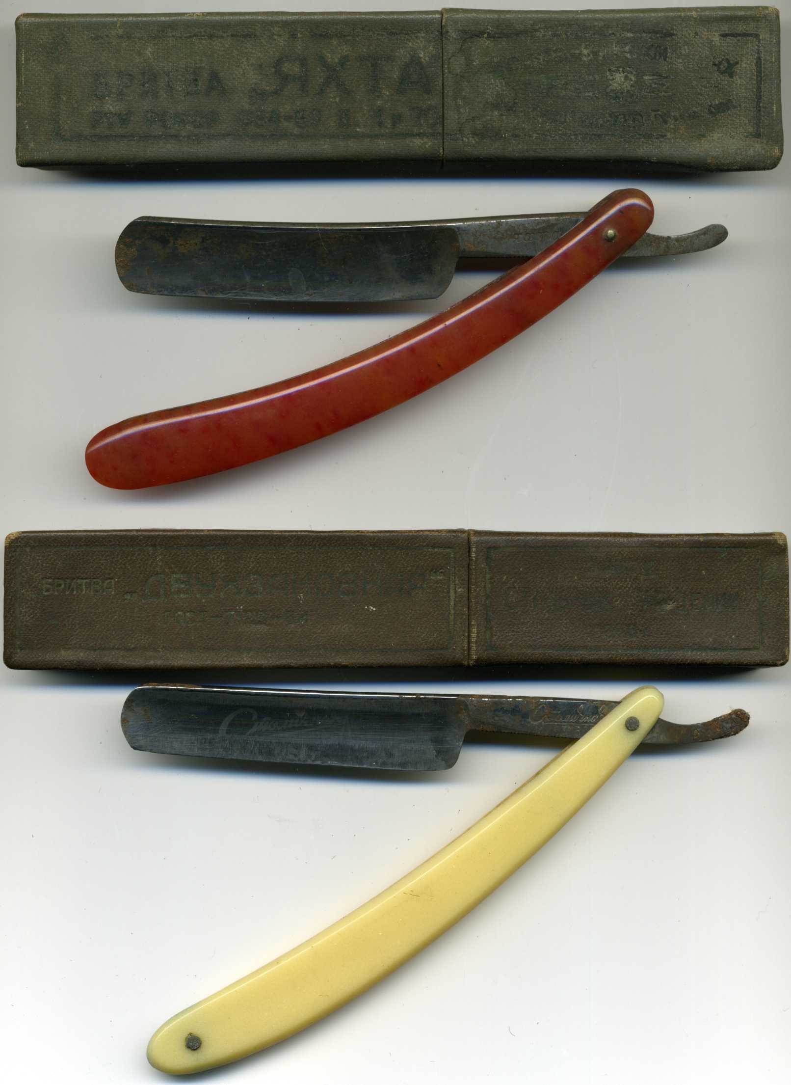 1. ERN - ручка пластик (или целлулоид), с металической вставкой логотипа. 2. REGILO, на обороте надпись swedish steel \ solingen germany, ручка дерево. Если заинтересует - прелагайте свою цену. С уважением Вадим. опасной бритвы времён СССР : ОСОБАЯ, Столичная, ЯХТА, Волга, Заря.Предложу вот такие бритвы советского производства , к сожалению пребывавшие в агресивной среде, что оставило следы на их лезвиях. Состояние на сканах.