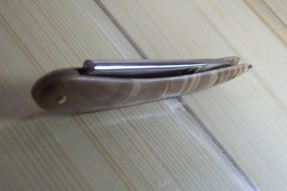 Re: Продаётся от ЕгорKrusius Brothers 170$ Продана Show Ручка сделана из берёзового капа ,пропитана воском натуральным на горячую , вставка между половинками - рог , заклёпки - латунь .