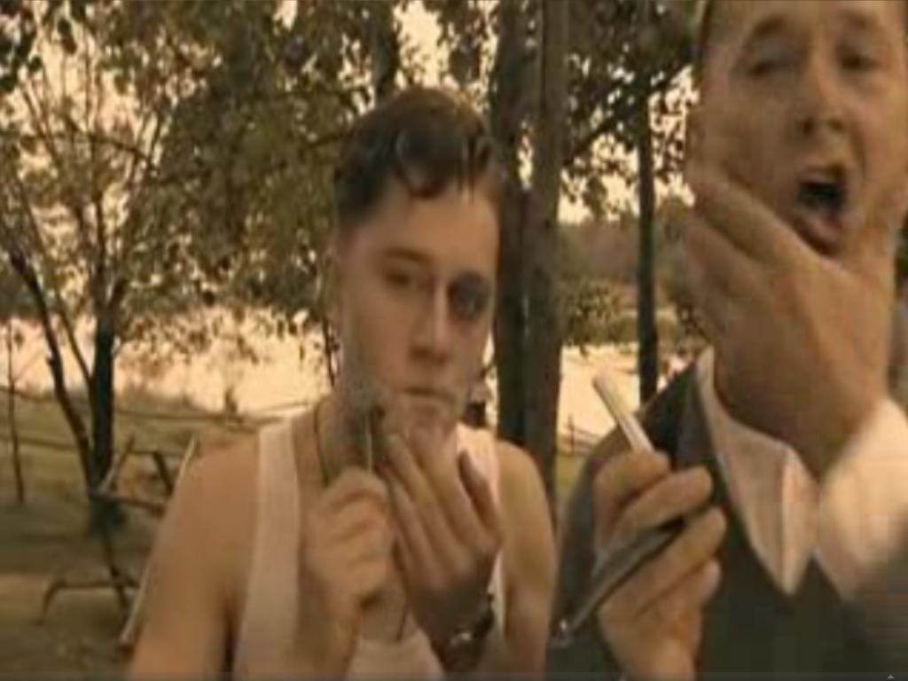 Ближе к концу негр бреет опасной бритвой в тюрьме своего белого любовника.