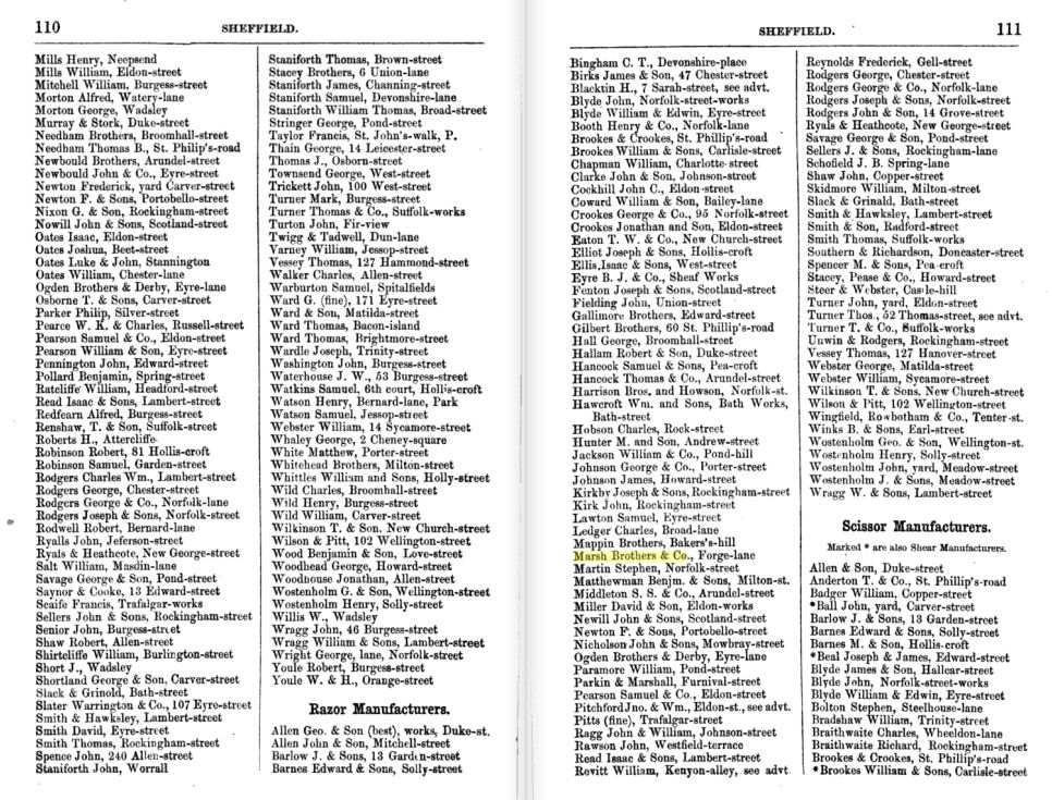 MARSH BROTHERS & CO, POND WORKS, SHEFFIELDФамилия Marsh в Шеффилде: