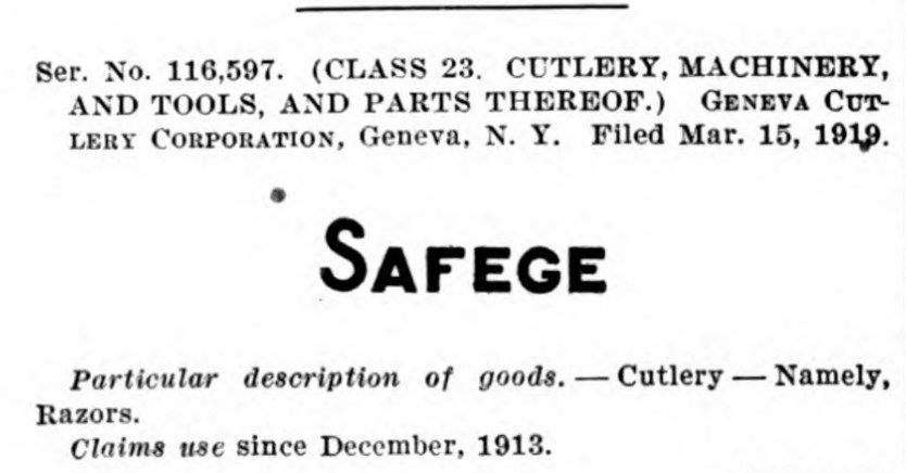Re: GENEVA CUTLERY CO.торговая марка. Регистрация в 1913 году, повторная в 1919: