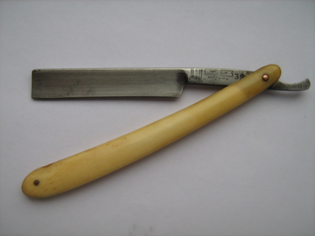 Ручка из кости - явно чужая, форма какая-то несоветская( кость на заводах РСФСР на бритвы не шла, да и вообще( упадничество это  )  Взята с другой бритвы. Цифра "39" - к году выпуска не относится. В 39г. завода СТИЗ еще не было вроде, а был МОСШТАМП