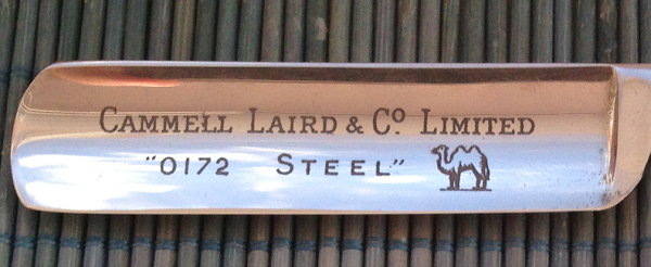 "Special Steel" и "0172 steel" в контексте CAMMELL, LAIRD & CO LTD это быстрорез (инструментальная сталь) high-speed steel (0172 Cammell-Laird steel). Не углеродка, поэтому и ржавчины нет, а только патина.